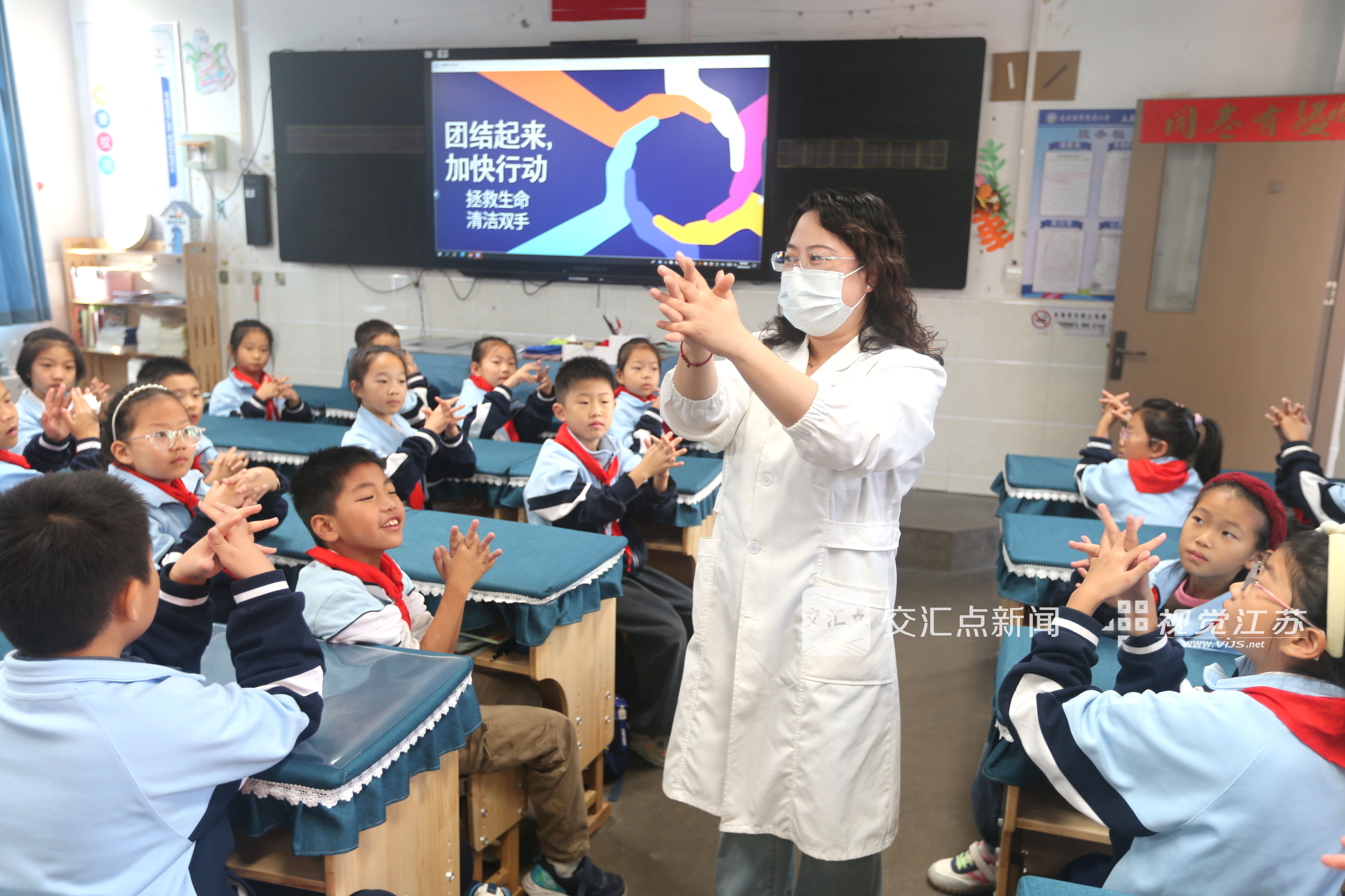 (特约摄影 王春 金媛 08:12摄 09:33上线)10月14日,连云港市院前小学组织开展“正确洗手 从我做起”主题活动,校医通过普及卫生知识、带领学生练习七步洗手法等方式,让学生养成良好的卫生习惯,迎接“全球洗手日”的到来。