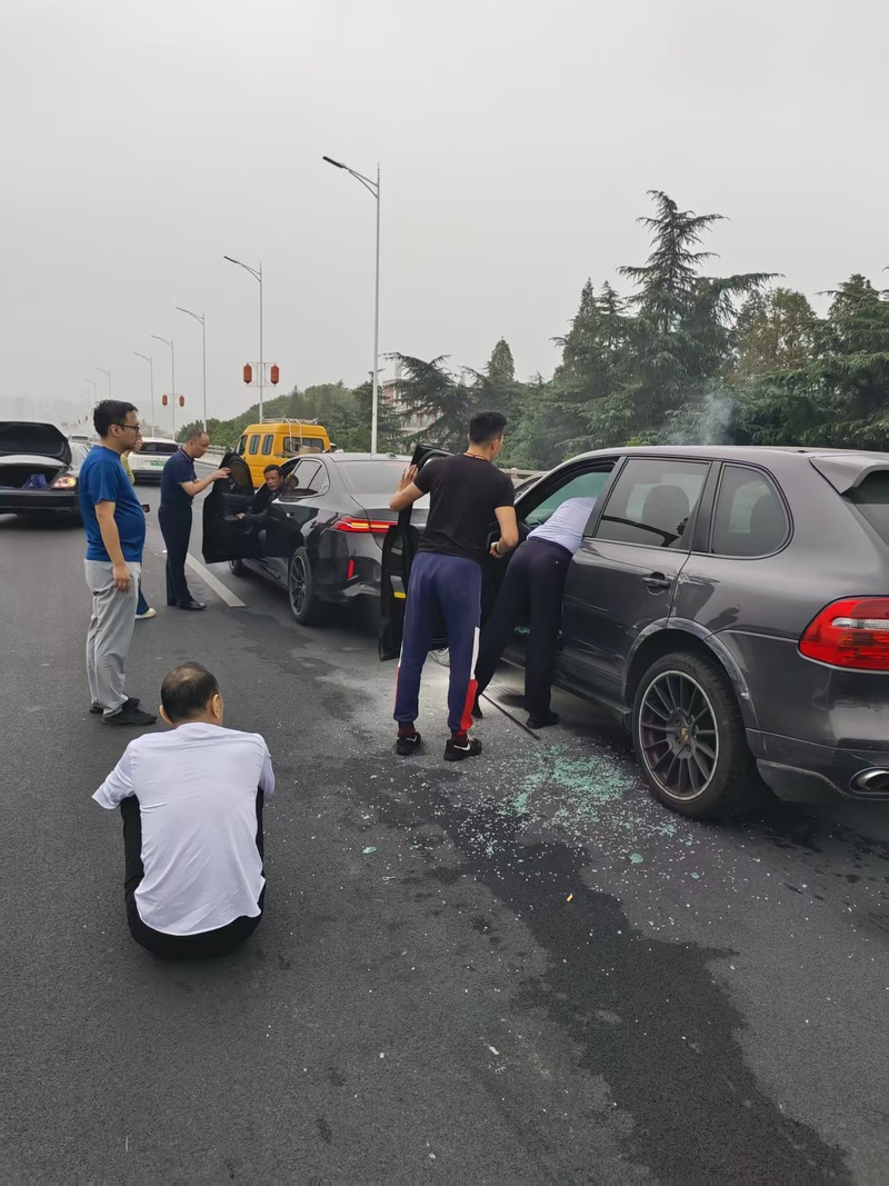 “应天高架上发生一起事故,现场好多好心人砸窗救人……”10月15日下午,南京一段路人拍摄的交通事故救援画面在网上流传,其中多位热心市民合力破窗救人引发关注。该起事故并未造成人员伤亡,但事后调查发现,现场作为救援“主力”的三位市民,竟然都来自南京公安交管部门。通过多方采访,路过的市民、热心的事故车主、大客车司机等,他们最终为记者还原了整个救援现场。
