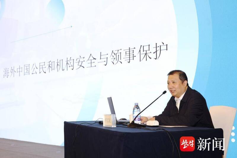 启动仪式后,外交部领事司参赞缪宏波以《海外中国公民和机构安全与领事保护》为题开讲,从海外安全形势、领事保护与协助工作定义、所做工作、问题困难、工作建议等方面,为现场观众深度解读海外安全应对要点,内容兼具专业性与实用性。