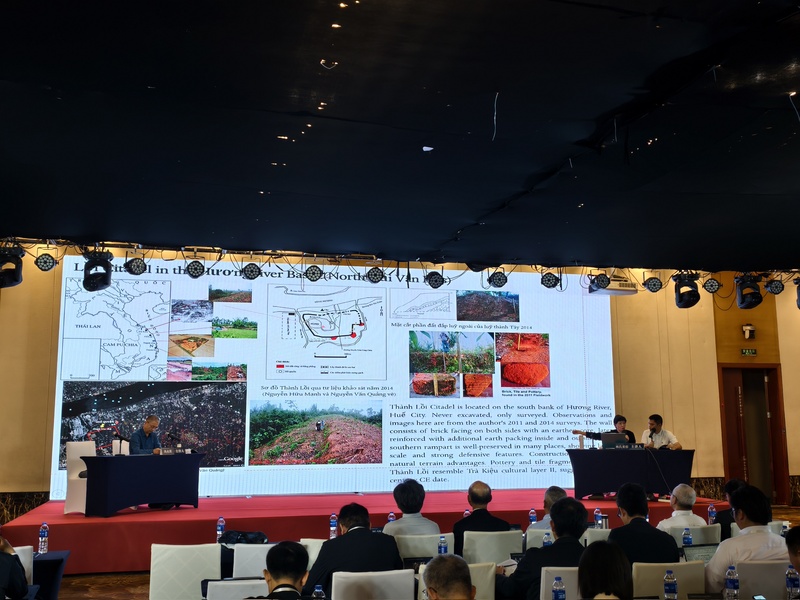 越南河内国家大学下属人文与社会科学大学特聘资深教授林氏美容,分享的主题是越南中南部的古国——林邑。她指出,越南中部狭长沿海地带,是连接大陆和海洋地区的天然桥梁,也位于中华文明和印度文明影响的交汇处,本地史前居民创造了以瓮棺葬、彩绘陶器、铁器和海上贸易为特征的“沙莹文化”。自公元初年开始,在秋盆河、茶曲河等流域逐渐形成多个小国,其中最突出的是中国史料中记录的林邑政治实体。林氏美容教授结合中国文献与当地考古材料,从三个主题探讨林邑国家形态:国家形成的基础及其与区域内其他政治实体的互动;反映其经济结构、宗教意识形态与组织结构的考古证据;中国、印度对林邑权力性质与政治结构演变的影响,揭示了越南中部早期权力体系在东南亚转型期的形成与变迁。