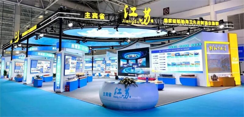 在展会现场,江苏搭建了540平方米的主宾省展区,省内优质船舶海工企业悉数亮相,36个高端船型与配套产品进行重点展示,包括全球首制江海直达纯电动力集装箱船、大型浮式液化天然气生产储卸装置、全球最大24000箱集装箱船、汽车运输船等“大国重器”,集中呈现我省全船型谱系化综合建造能力。