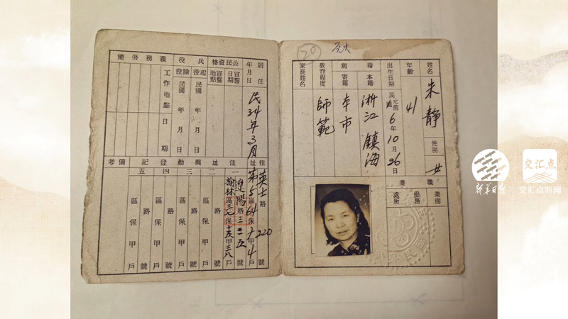 直播现场,朱枫孙女朱容瑢戴上白手套,小心翼翼展示了朱枫的一份上海身份证,姓名“朱静”,居住时间始于民国三十四年(1945年),发证时间为民国三十五年(1946年),此身份证为家人首次向社会公开。当时朱枫以此名应对国民党检查,在上海通过同丰商行等从事地下工作。