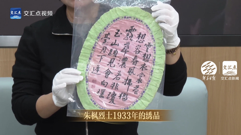 直播中,后人还展示了朱枫1933年亲自书写并刺绣的镜罩、日常使用的发夹与纽扣等生活用品。这些生活遗物与工作物证相互印证,生动还原出一位兼具智勇胆识的革命者与优秀知识女性特质的立体肖像。