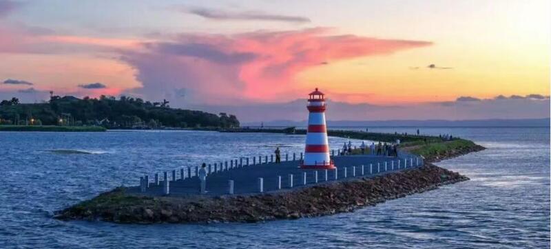 在地标性建筑灯塔前,专业摄影的拍摄技巧是站在灯塔正前方,以太湖为背景,可以拍出灯塔的孤寂与守望感。沿着灯塔步行,沿途还设置了4个以“人生”为主题的打卡点,非常适合拍有故事感的系列照片,记录不同阶段的美好。拍完灯塔,游客还可返回到长堤入口边的流动茶仓,捧一杯汉唐釜煮茶,或者去长堤旁边的集装箱咖啡馆,来一点咖啡、面包作为补给。此外,“躺岛部落”里有白色砂石、黄色遮阳伞、蓝色躺椅等,都是拍摄“海岛”照的氛围道具。