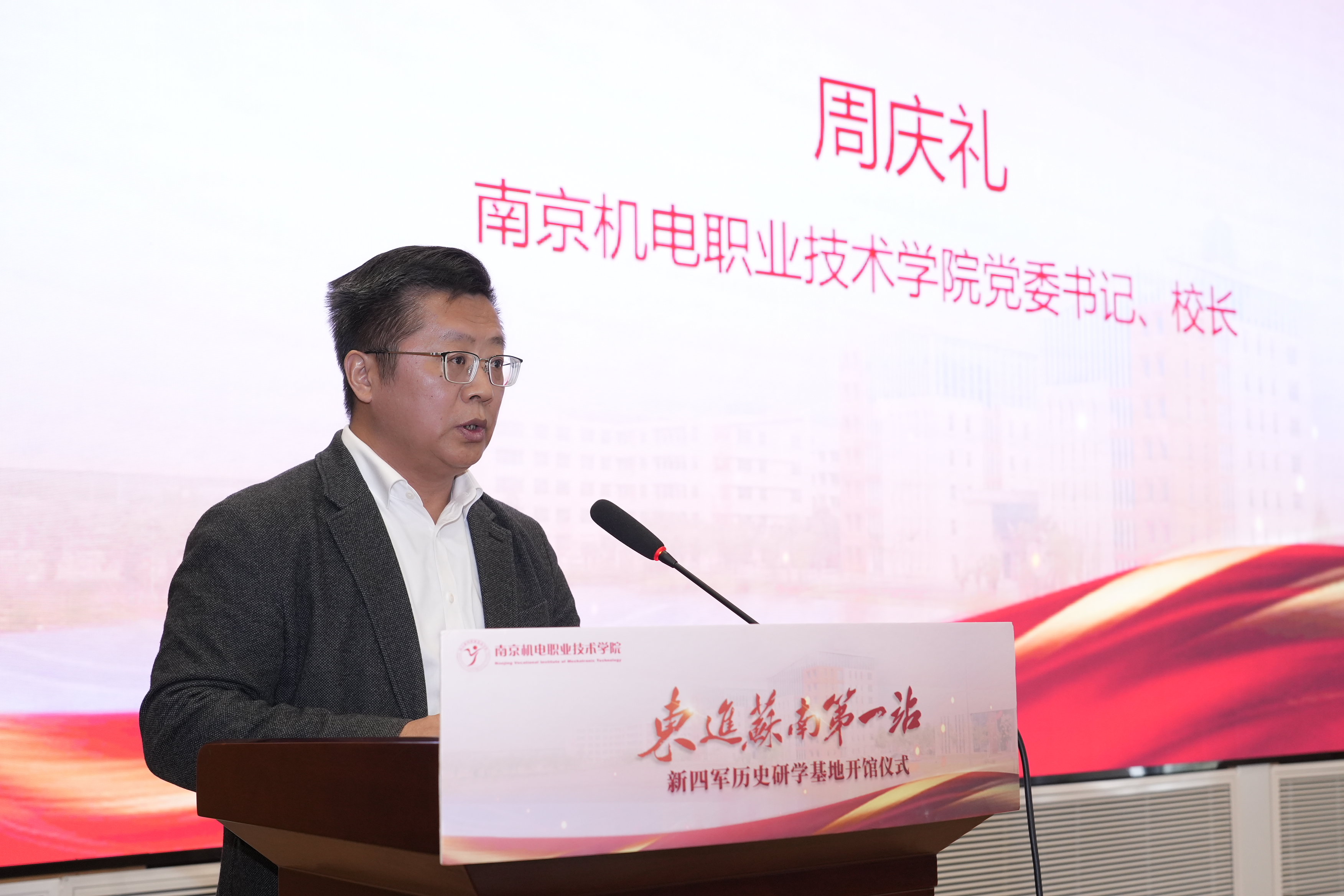 中国新四军研究会学术委员会主任常浩如表示,今年是中国人民抗日战争暨世界反法西斯战争胜利80周年,“东进苏南第一站——新四军历史研学基地” 开馆并展出珍贵的原始资料,将有利于同学们身临其境更好地了解江苏作为华中敌后抗战主战场的那段红色历史。南京机电职业技术学院在推动思政教育与红色文化有机融合方面做出了很好的探索。
