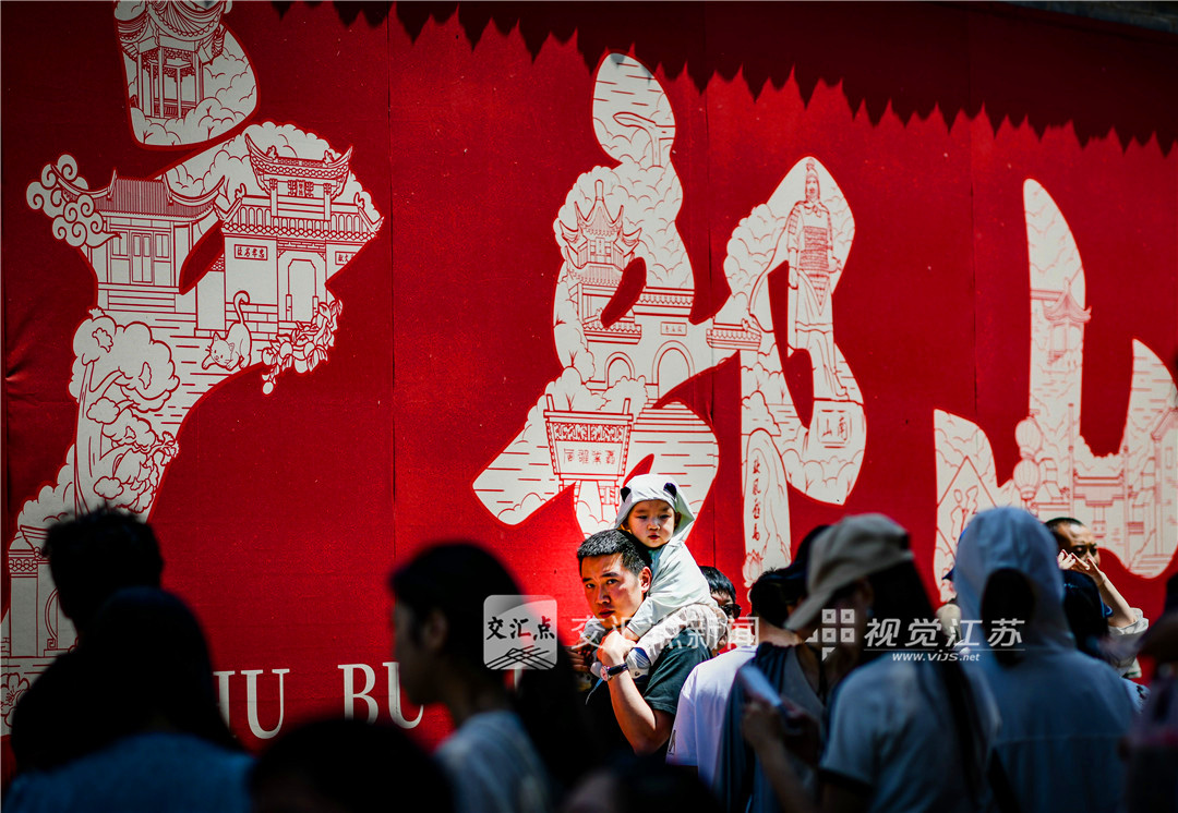 在江苏各地,这样与特色景观的“奔赴”或“偶遇”,俯拾即是。淮安市河下古镇的老宅前,身着古装的少女款款走过,衣袂飘飘间与古建相映成趣,定格成一幅浓墨重彩的古风画卷,吸引着汉服爱好者纷至沓来;扬州东关街的“扬州墙”上,密密麻麻的老街巷名承载着城市记忆,游客们在此寻觅熟悉的地名,合影留念中延续着市井情怀;徐州户部山的巨大墙绘色彩斑斓,吸引着市民驻足打卡;南京颐和路的歪脖子树造型独特,游客们排起长队,只为与这棵“网红树”定格专属记忆……