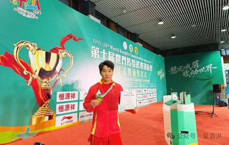 赛场上,他不畏强手,顽强拼搏,最终勇夺男子“九节鞭”项目冠军、集体项目冠军以及传统拳术项目亚军,以硬核实力绽放光彩。