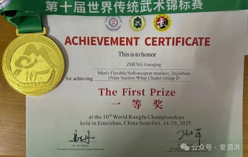 交汇点讯 近日,被誉为“武术界奥运会”的第十届世界传统武术锦标赛在四川圆满落幕。宿迁市泗洪县的运动员郑国庆作为江苏省唯一入选国家武术队的选手,代表中国参加了本次比赛,并在本次世界级大赛中表现出色,斩获两金一银。