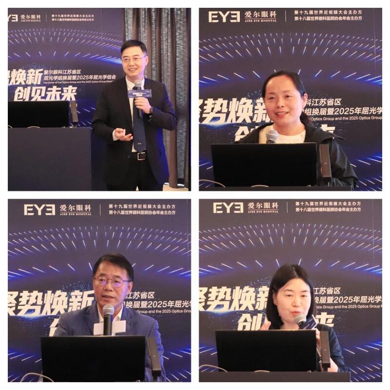 会议伊始,爱尔眼科江苏省区CEO喻苗宣布屈光学组成员换届:上海爱尔眼科医院副院长蔡劲锋卸任屈光学组组长,南京爱尔眼科医院屈光手术科主任伊军记担任新一届学组组长,盐城曙光爱尔眼科医院副院长闫寿健、苏州爱尔眼科医院副院长博文、无锡爱尔眼科医院屈光手术科主任熊娟担任学组副组长,学组成员由省区内各医院屈光科室的带头人及技术骨干共同构成,汇聚了在全飞秒、ICL晶体植入等前沿技术领域具有深厚造诣与丰富临床经验的专家团队。