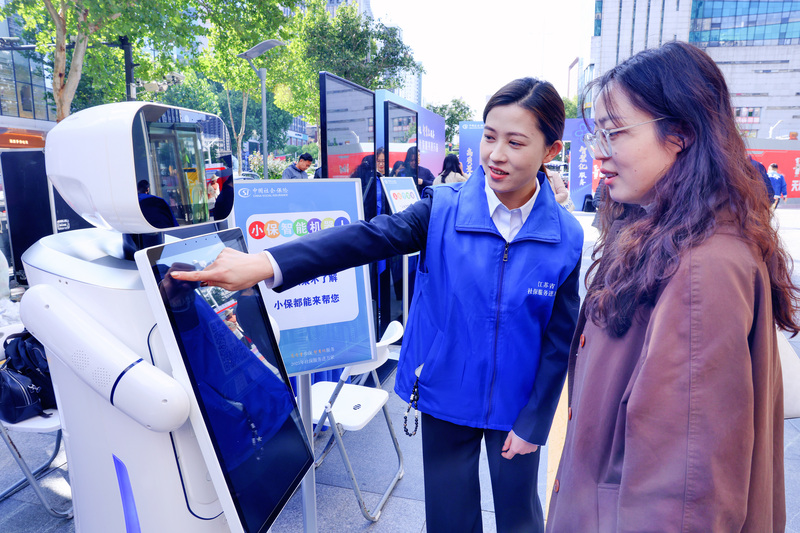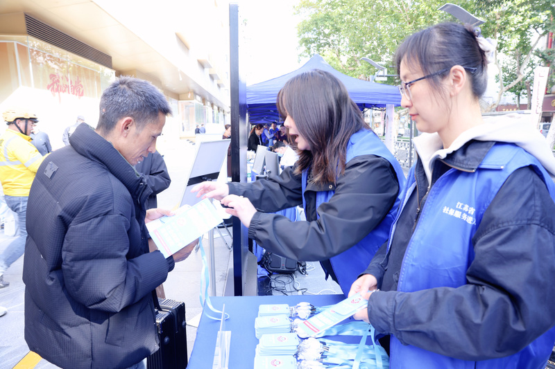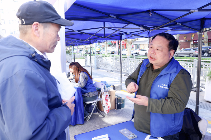 23日下午,南京市珠江路金鹰壹号广场被一片温暖的“社保蓝”点亮,省和市人社部门组织的“社保服务进万家”咨询摊位一字排开,接受市民咨询。