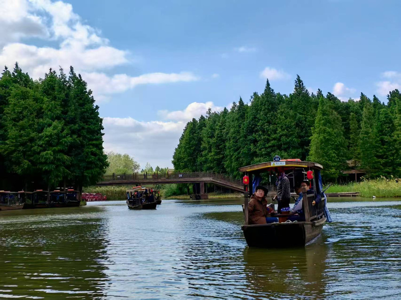 在溱湖国家湿地公园坐上摇橹船,听着船娘唱小调,尽享生态之美;到溱湖阿派朗创造力乐园,在游戏互动中感受科技与自然融合的魅力——这两个相距仅1公里多的景点,均在溱湖湾宜居宜业和美乡村片区内。