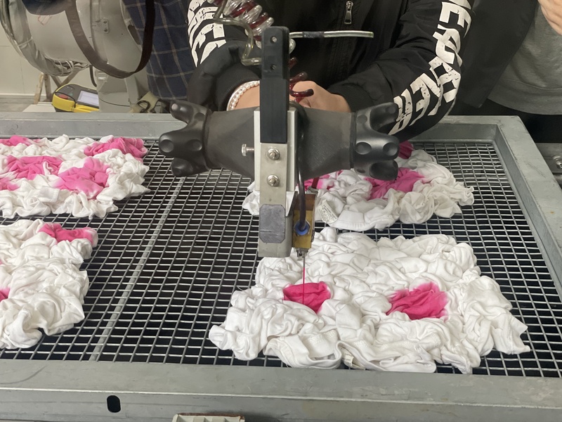 “由于我们是细分赛道,没有现成的设备可以采购,我们和东华大学通过产学研合作,目前实现了注染、刷色染等5-6种扎染工艺的AI替代。以前人工生产时,产品返工率约为五分之一,现在机器人生产的产品已有98%合格率;机器人生产线的效率较人工提升6倍;一台人工智能机器人抵得上5个工人的工作量;通过不断改进流程,机器人生产线能够替代整个扎染流程30%的工序。”提及机器人生产的效果,江苏华艺集团企管中心总经理葛坤锋列出一组喜人的数据,他表示,这条产线既保持了产品手艺,又满足了客户对高品质、高效率的需求。