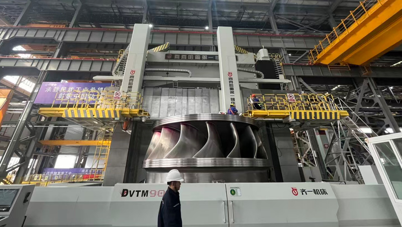 嘈杂的大型车间内,工人正操作巨型数控机床,对抽水蓄能机组刀具进行精密调整。“这属于水电站发电的核心机组部件,工人会结合电脑生产终端,对精加工的刀具进一步调整。”哈电镇江公司相关负责人介绍。