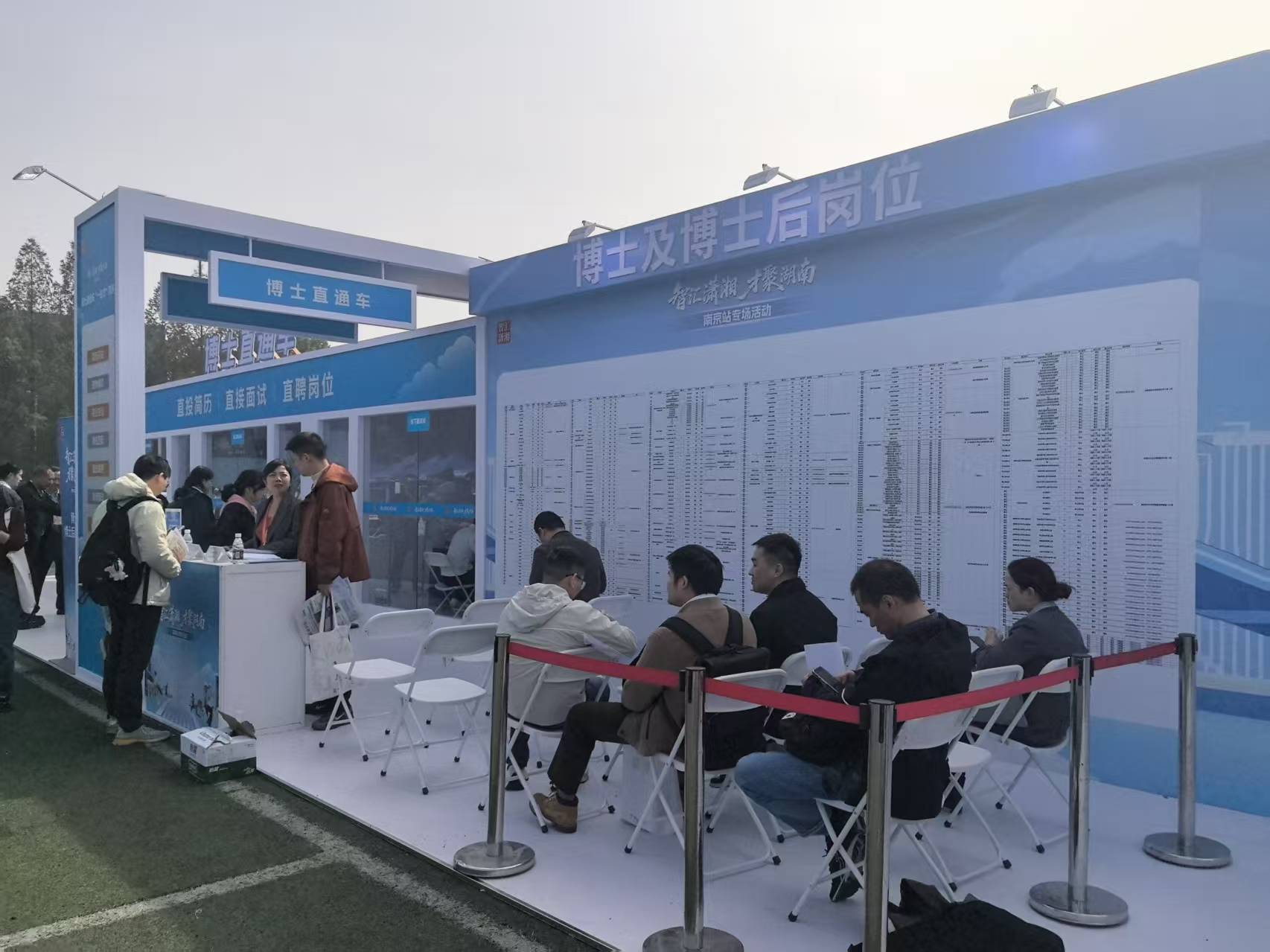 “接收单位会进行第二轮筛选,最终锁定十几位核心候选人。因此今天现场,会看到一些热门候选人正同时接受多家单位的面试。”张忻指着其中一个面试区说,“比如今天这位生物信息分析的博士,就同时获得了芙蓉实验室、中医药大学和南华大学的青睐。这种安排让优秀人才能够直接对比各家的条件,实现‘反选’,从而做出最有利于自身发展的选择。”