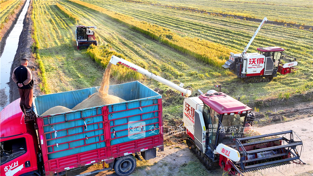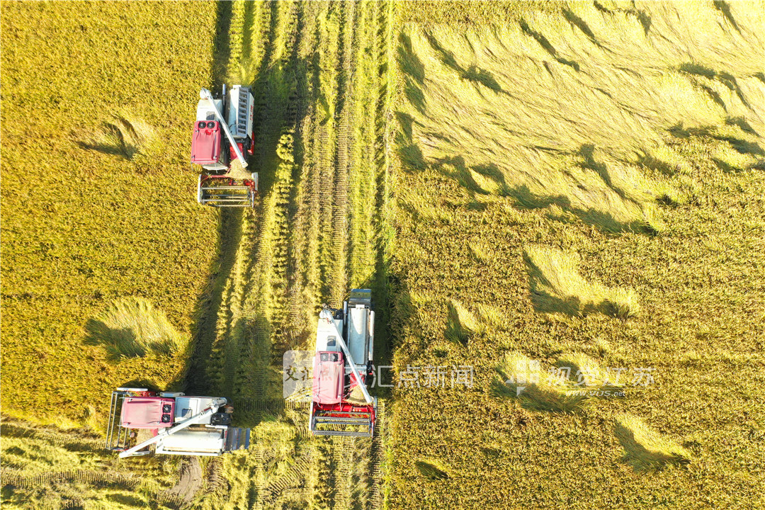(特约摄影 陶桂军 严连凤 刁淑霞 9:14摄 13:01上线)11月2日,连云港市海州区的江苏农垦岗埠农场和灌云县圩丰镇三张梨村,收割机在田间收获水稻,种粮户们抢抓晴好天气,确保颗粒归仓。