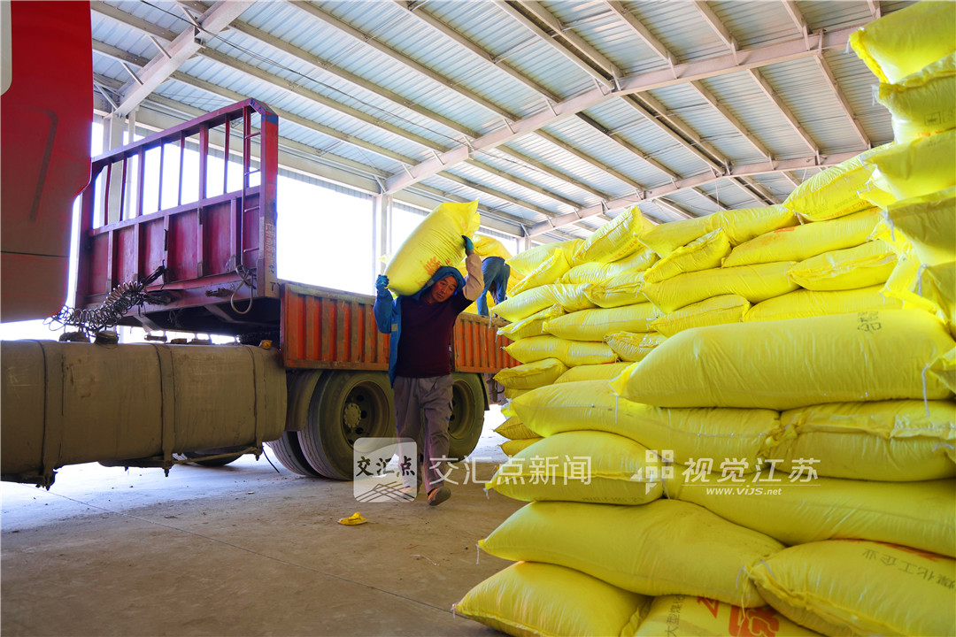 (特约摄影 徐卫 方冉冉 9:31摄 13:08上线)11月2日,连云港市海州区的江苏农垦岗埠农场,工作人员在一处农资仓库装卸、转运肥料。连日来,当地加紧做好农资准备工作,仅肥料就备足了1600吨,切实保障小麦秋种稳步推进。