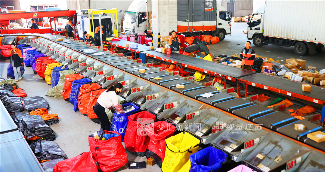(特约摄影 耿玉和 08:08摄 10:32上线)11月2日,连云港市公共配送中心,工作人员正在分拣快递包裹。进入11月,连云港市众多物流快递企业加紧进行腾仓扩容、增强运力,添置分拣设备,更新改造全自动分拣线,租购快递无人车,全力备战即将到来的“双十一”消费购物高峰。