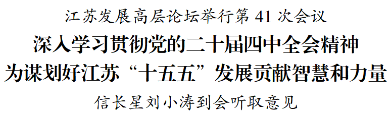 信长星、刘小涛认真听取发言,对大家的前瞻思考、真知灼见给予称赞。信长星说,这次会议既是学习领会党的二十届四中全会精神的一次交流研讨,也是对江苏“十五五”发展的一次高水平建言献策。省有关部门对大家的发言和会议交流成果要仔细梳理、认真研究,吸收到规划《建议》起草和《纲要》编制中。