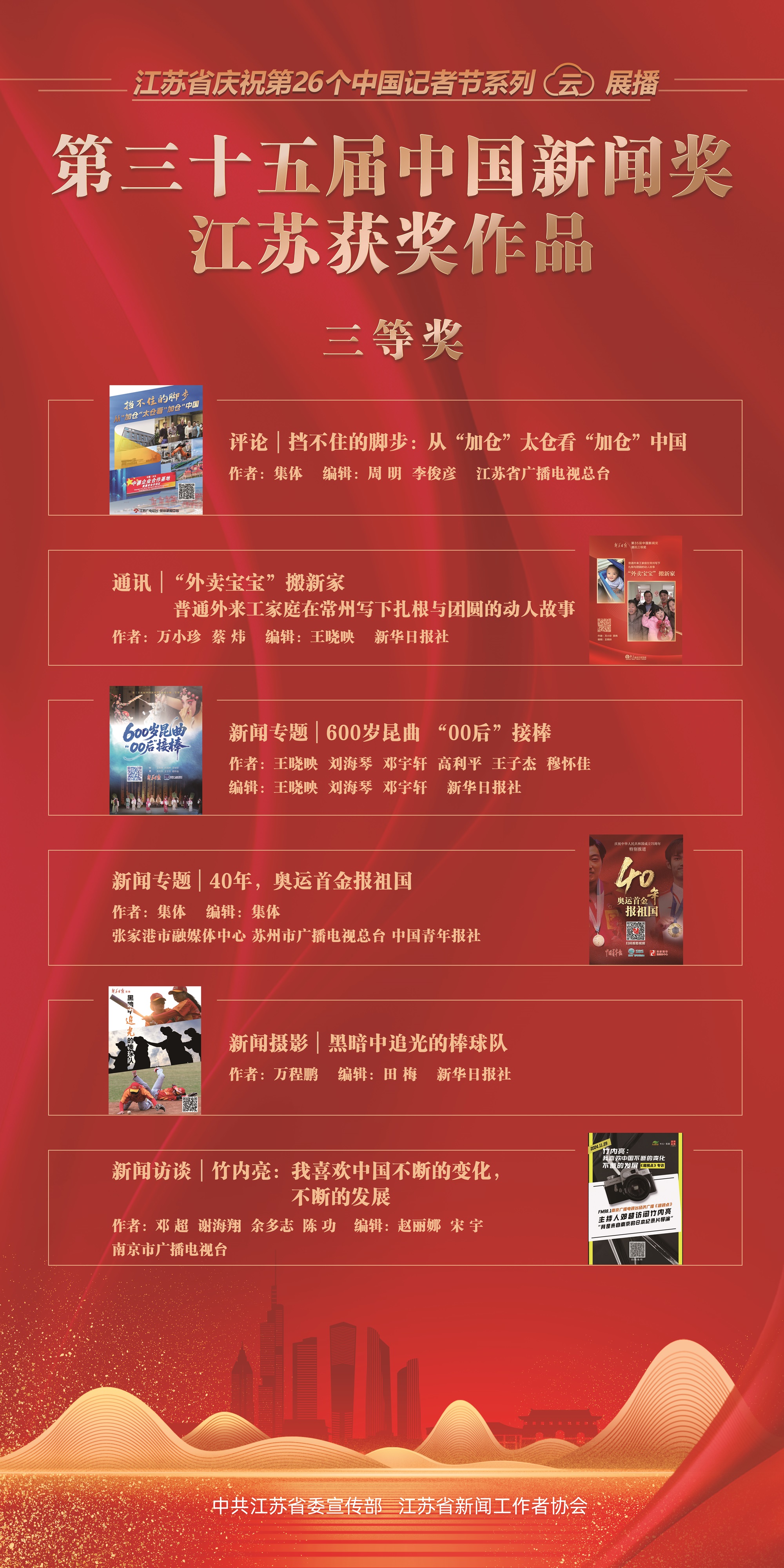 “第35届中国新闻奖评选中,江苏取得了优异成绩,总体实力继续位居全国第一方阵,这是对我省主流媒体系统性变革阶段性成果的一次集中检阅。”周跃敏表示,本届中国新闻奖的丰硕成果与“好记者讲好故事”的亮眼表现,既是记者节的至高奖赏,更是送给江苏全体新闻工作者一份最好的节日礼物。