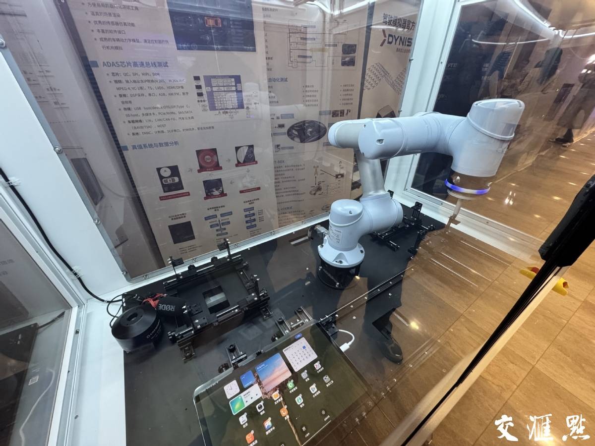 东方中科展位上,透明“大箱子”里的机械臂、话筒、平板电脑等设备有序运作。苏州分公司研发负责人郭靖介绍,这是自主研发的“智能座舱测试台架”,专为车机系统测试打造。白色机械臂可精准点击屏幕,加装二指配件能实现滑动、缩放,可更换接头适配不同场景;话筒搭配仿真嘴模拟人声,测试语音唤醒与指令响应;平板电脑还原车载各类屏幕;高清摄像头每秒拍摄60张照片,能捕捉肉眼不可见的屏幕卡顿。郭靖说,屏幕响应速度等细节直接影响驾驶体验,自研AI大模型可扩展测试场景,保障语音功能稳定。该设备适应性强,既能测试单独车机屏幕,也可嵌入实车测试,目前已接到多家车企测试邀请,相关业务已在苏州落地。