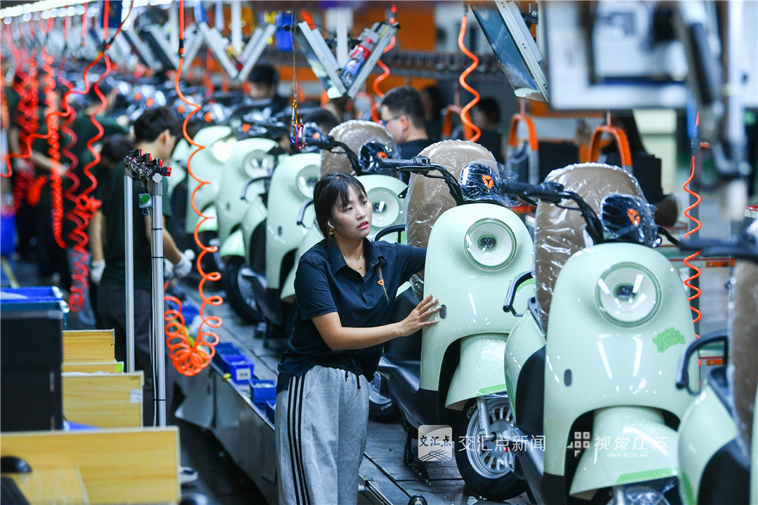 9月16日,雅迪无锡基地,新款电动车批量生产中,14条生产线,年产量超300万辆。经过20多年发展,锡山电动车产业已成为有国际竞争力的国家级特色产业集群,电动车国内十强有6家在这里建厂。新华日报·交汇点记者 邵丹 摄