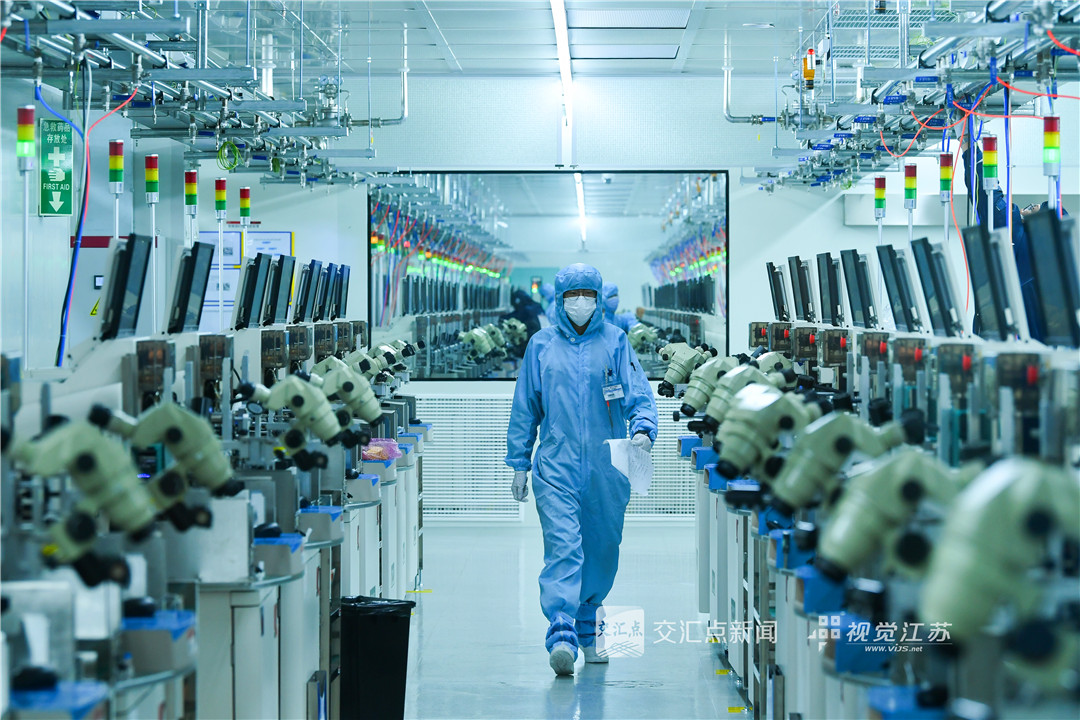 9月18日,扬州,扬杰电子科技股份有限公司车间内的智能化生产线,设备自动运转,技术工人正有条不紊地穿梭其中。该企业致力于功率半导体产品的研发与创新,是国内极少数深度垂直一体化全产业链(IDM)企业。新华日报·交汇点记者 邵丹 摄
