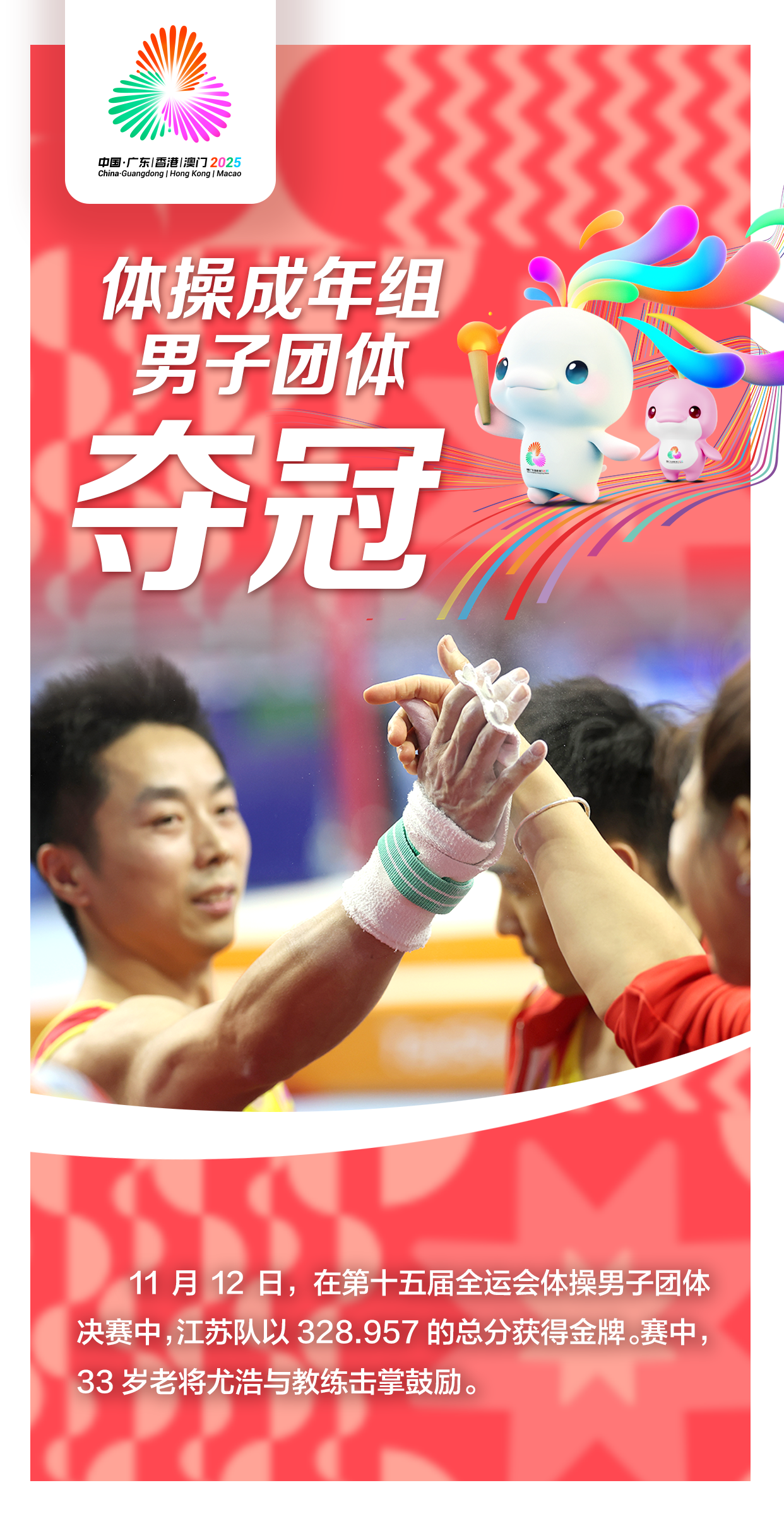 卫冕成功!11月12日晚10点,随着终场哨响,江苏队以近三个半小时的鏖战力克劲敌,蝉联第十五届全运会体操成年组男子团体决赛冠军。预赛位列第二,决赛阶段以稳扎稳打的姿态逐步拉开分差,这支上届冠军队最终夺下本届全运会金牌。“比赛比的是团结,我们把所有力气和精气神都团结在了一起!”全运会“五朝元老”尤浩赛后感慨,“拼搏至上、团队至上”的信念,让江苏队得以续写辉煌。