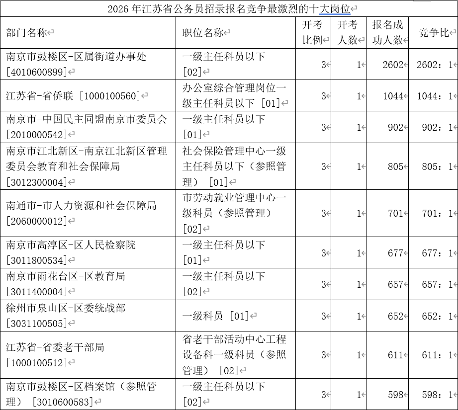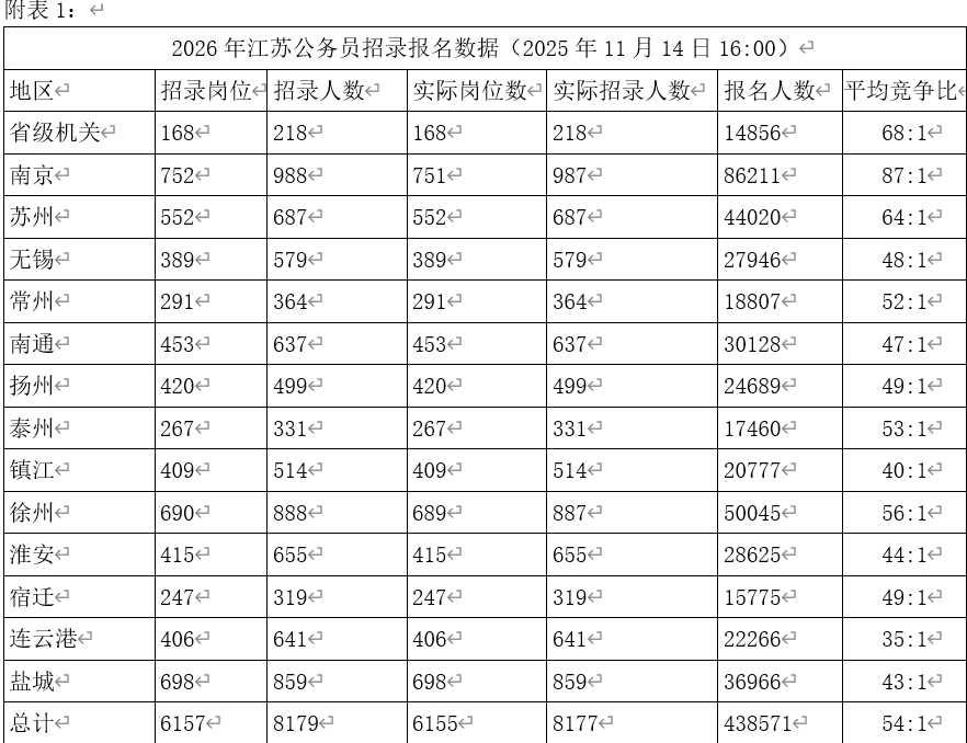 交汇点讯 2026年江苏省公务员招录于11月14日完成报名及审核工作,尽管今年招录计划较去年减少1325人,但综合报考年龄放宽等因素,报考热度不降反增。