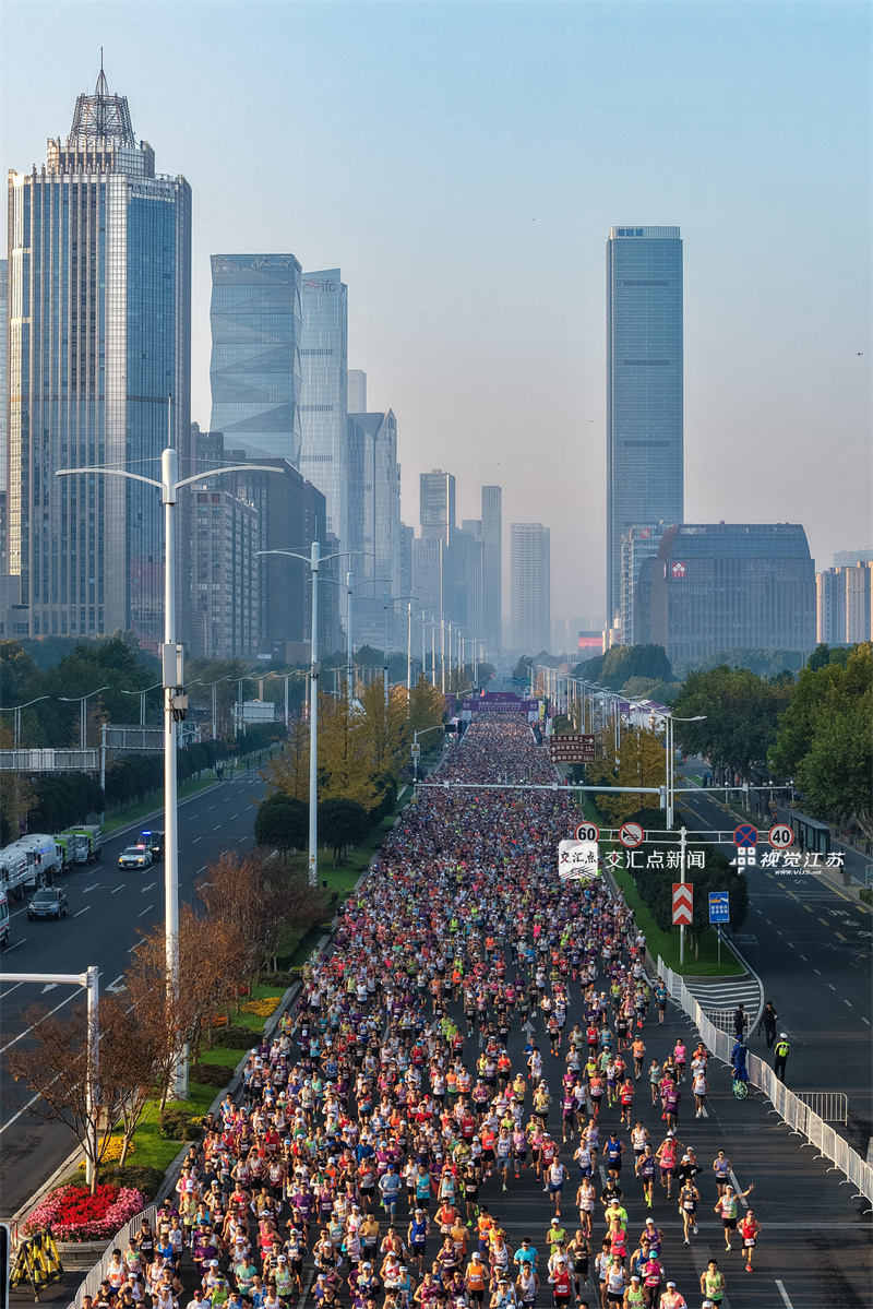 来自各地的2.4万名选手齐聚南京,在赛道上快乐奔跑。新华日报·交汇点记者 蒋文超 摄