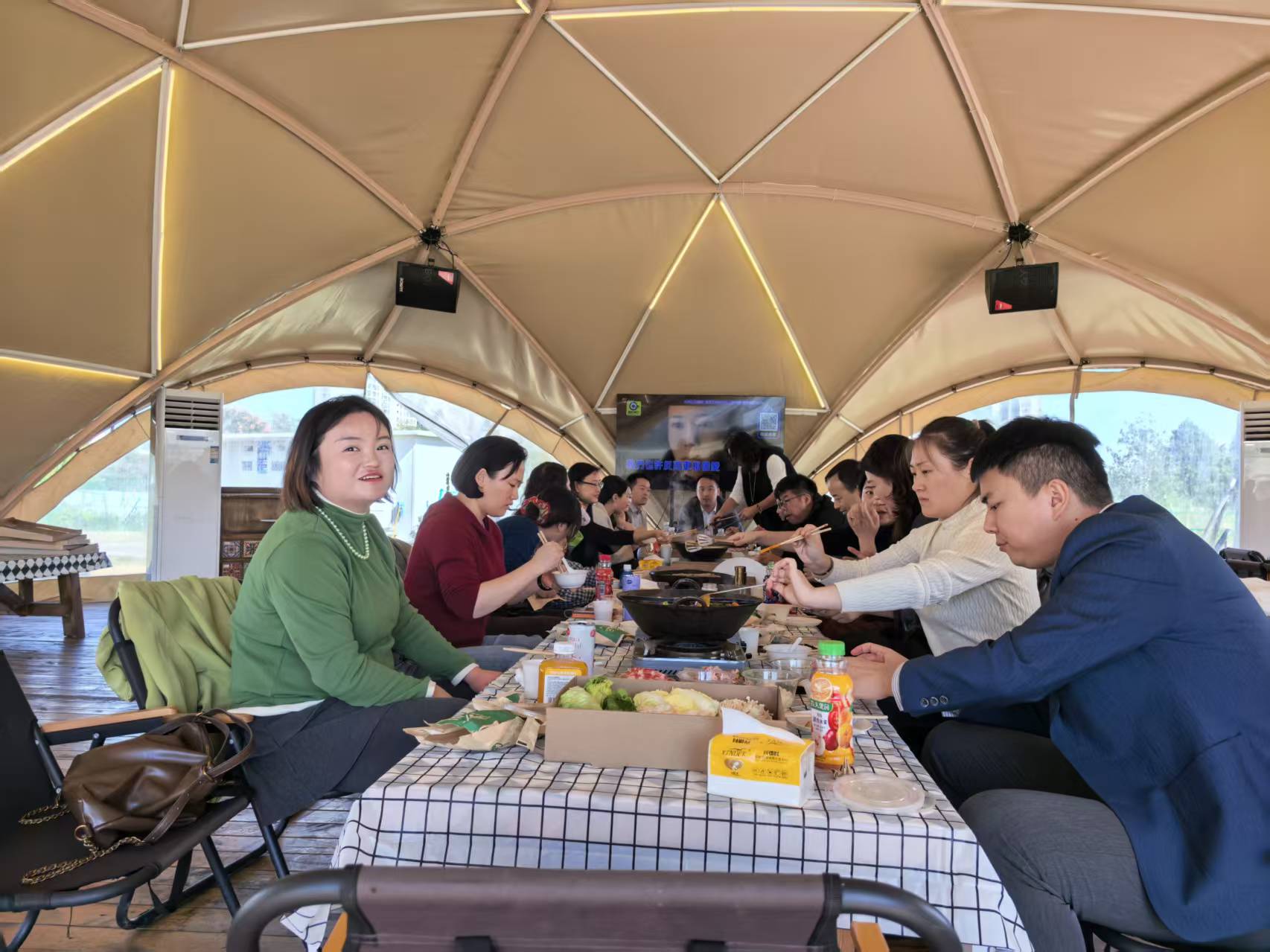 营地内帐篷种类丰富、风格各异,既有充满原始风情的部落帐篷、尽显精致格调的轻奢帐篷、造型别致的帆船帐篷,也有觅屿、鹿禾、谷丘、南禺、黎明、牧云、念川等特色帐篷。小帐篷可容纳五六人,大帐篷能同时接待上百人用餐,日常固定开放约30顶,节假日高峰期可增至40多顶。卡式炉加热的火锅,保障了户外用餐的安全性,也保留了热气腾腾的用餐氛围,让食客在自然环抱中享受美食。