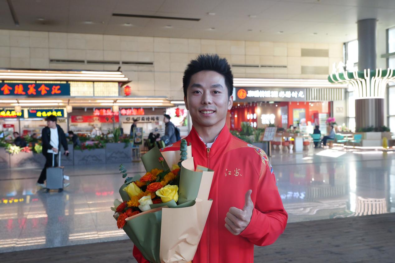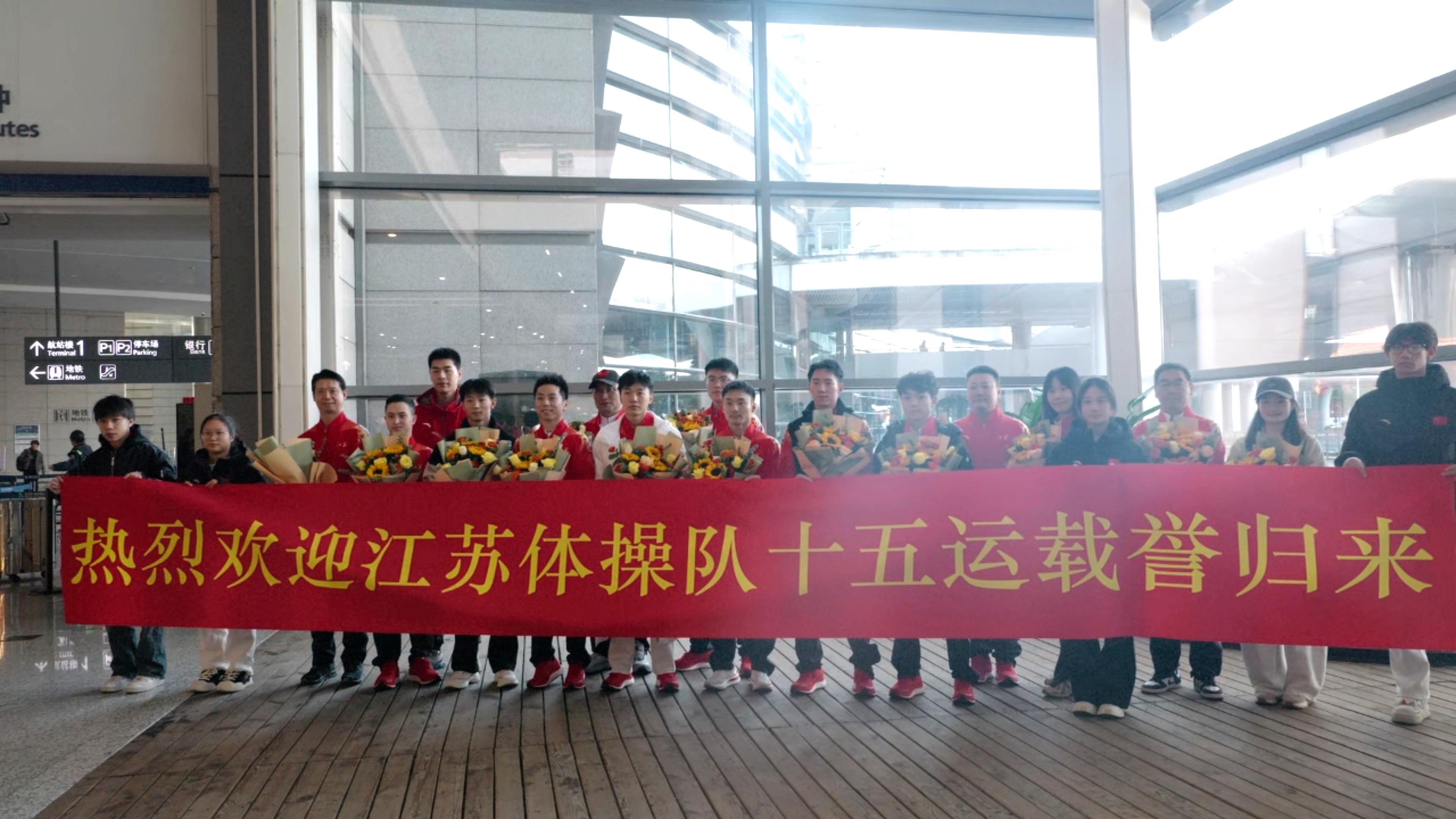 交汇点讯 11月18日下午,南京禄口机场接机大厅淹没在欢呼与鲜花中。刚刚在第十五届全运会体操成年组男子团体决赛中成功卫冕的江苏省体操男队,载誉凯旋。尽管面带旅途风霜,队员们眼中闪烁的兴奋与自豪却难以掩盖。11月12日那场荡气回肠的巅峰对决中,孙炜、尤浩、侍聪、洪延明、唐淇和杨焱智六名队员顶住重压,以总分328.957分将冠军奖杯稳稳揽入怀中,续写“冠军之师”的传奇。