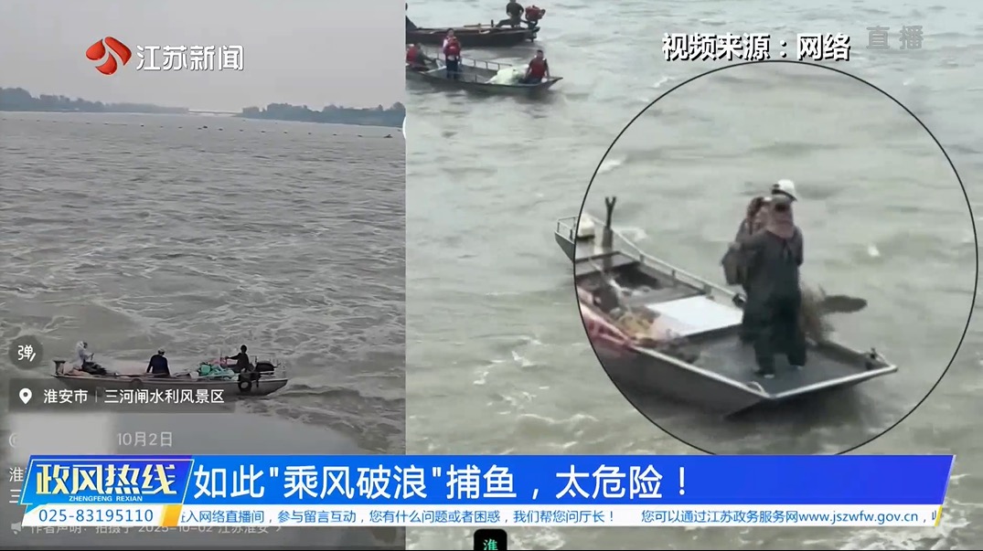 网络短视频平台用户发来一则关于非法捕捞的投诉:淮安洪泽湖三河闸泄洪时湖水翻滚,但在泄洪闸警戒区内,却有人驾船闯入,在风浪中非法捕捞,十分危险。11月5日,记者就非法捕捞问题向三河闸管理所进行反映,对方表示一直在严查偷捕行为。