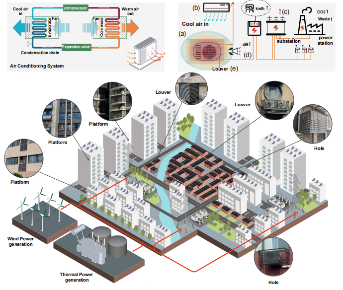 去年,同样发表在《Nature Cities》的另一篇论文《空调外机的“隐藏成本”——遮挡罩对制冷效率、噪声及碳排放的影响》,是胡秦然教授和王伟副研究员聚焦老百姓身边的“小事”——空调外机罩。