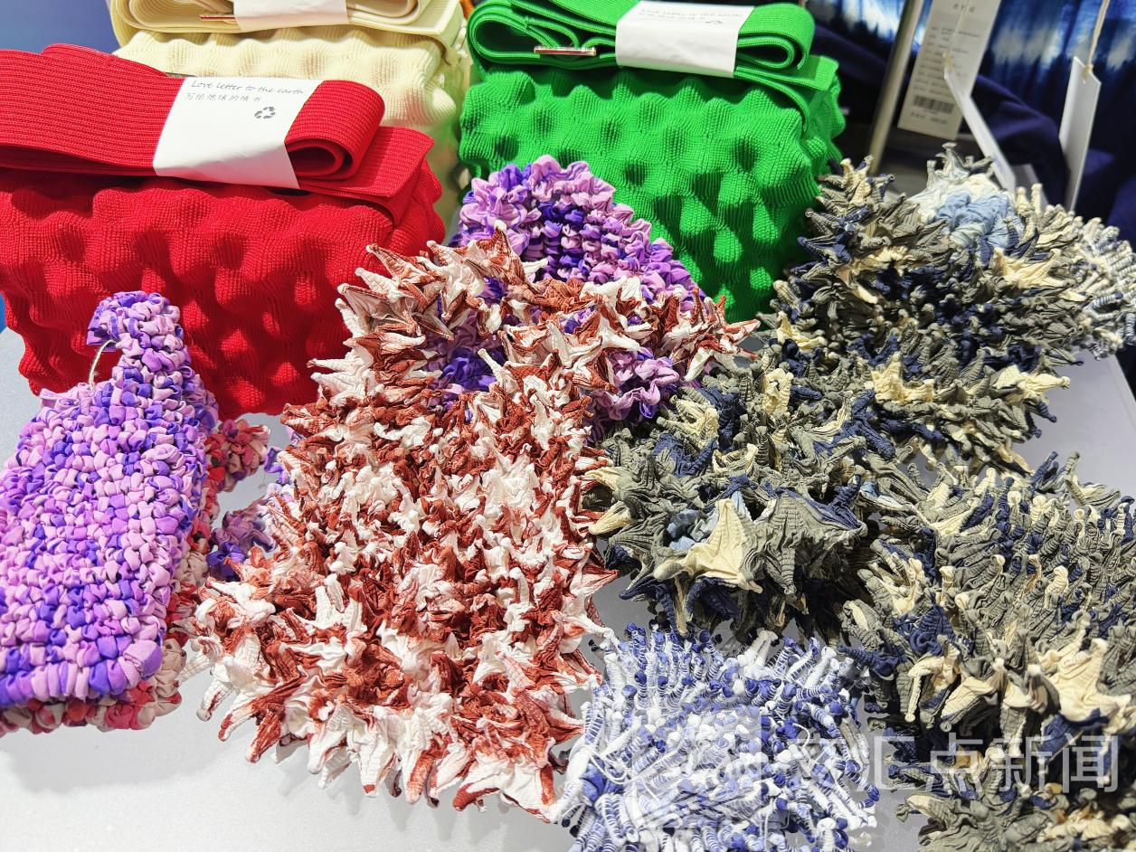 现场还有原创设计水桶包、时尚手提包、绣片等潮流非遗文创产品