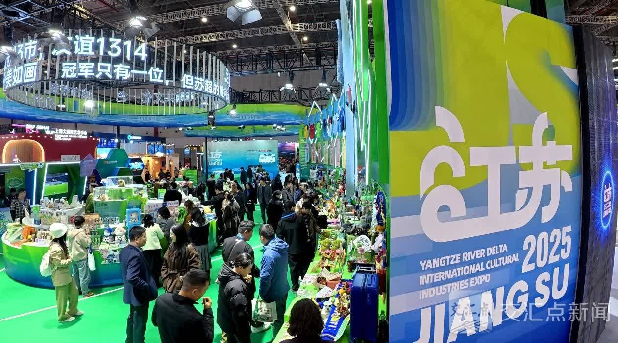 本次江苏展区,展陈面积达2000平方米,共设置“苏超”主题展区、“数智引擎”和“国潮新风”三大板块,携万余件优质文化产品打造“可观可买可体验”的空间。现象级IP“苏超”成为绝对焦点,“苏超”+文旅、“苏超”+文创、“苏超”+科技三个维度,生动呈现了这一草根竞技赛事如何激发社会活力、构建起文体赋能经济消费的闭环生态。