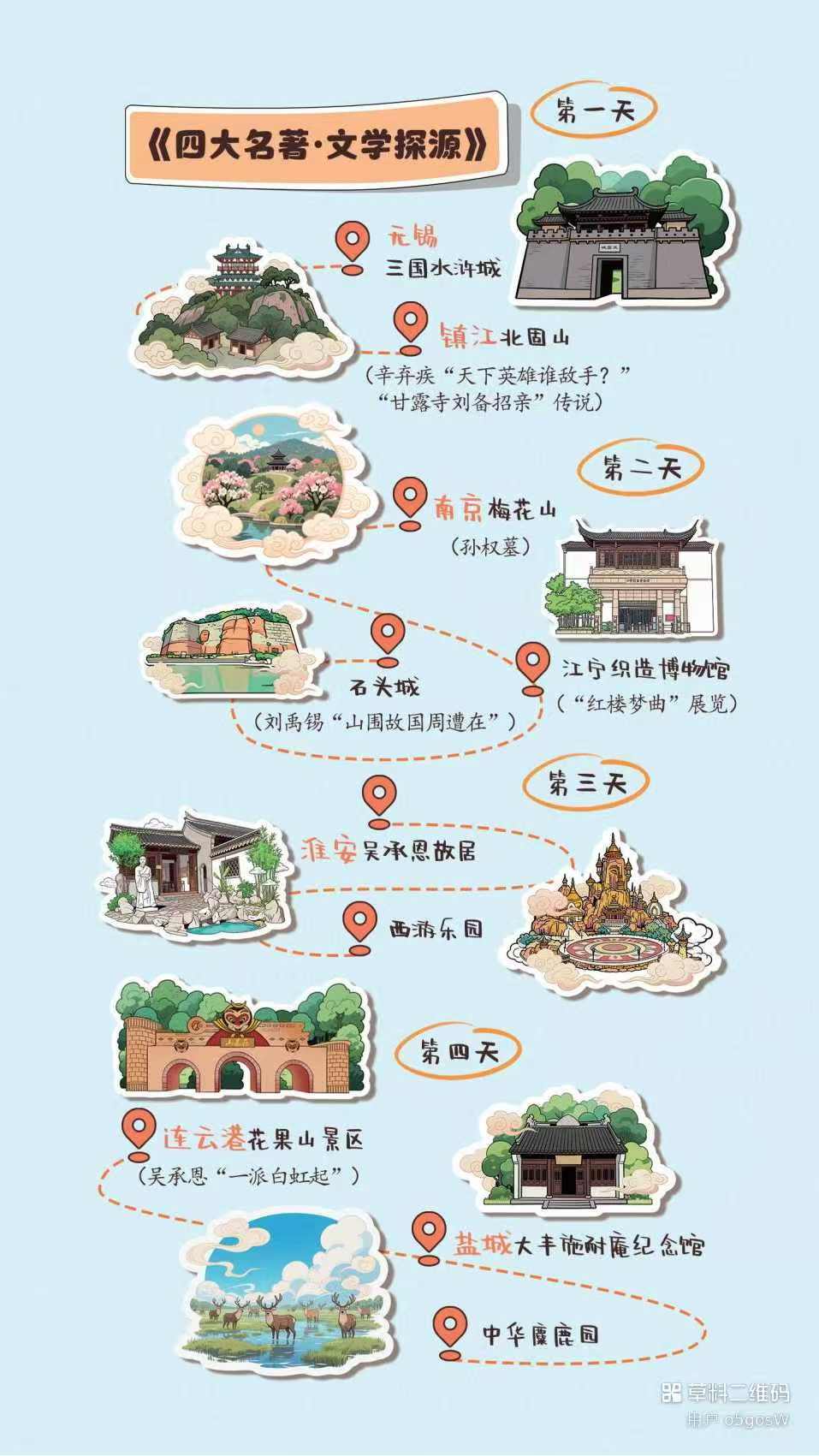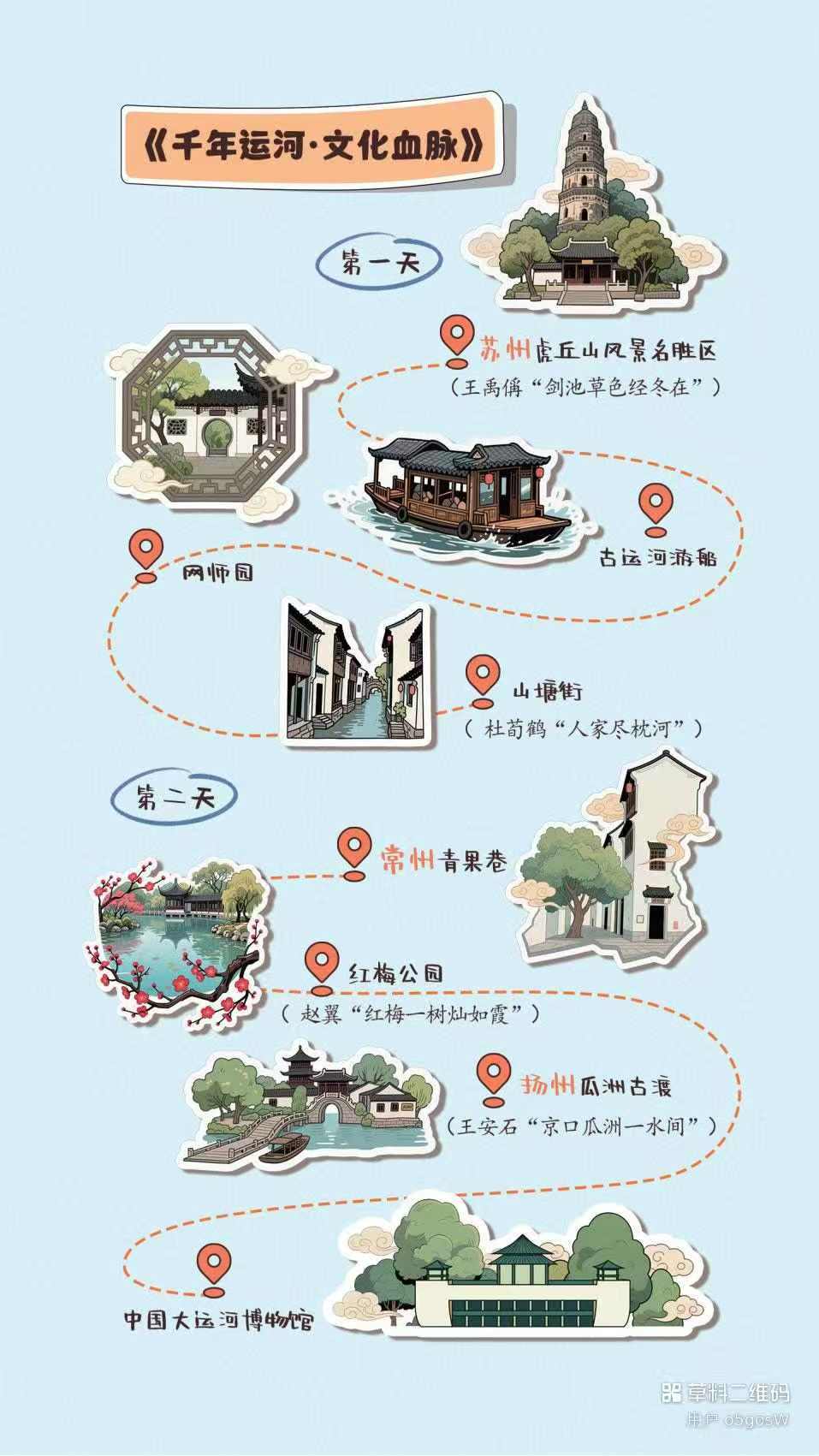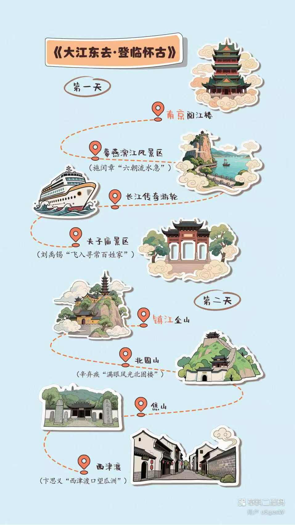 坐拥庞大的诗词宝藏,江苏省文化和旅游厅组织开展“读诗词·游水韵江苏”主题活动,正式推出手绘《水韵江苏·诗词地图》,精选64首流传广泛的诗词名作,串联起江苏13个设区市的地标景点与历史文脉,并提供十条诗词主题旅游线路,以诗词文化为切入点,循着历代文人墨客的足迹,带领大家领略江河湖海的魅力,共享“水韵江苏”高质量发展的成果。