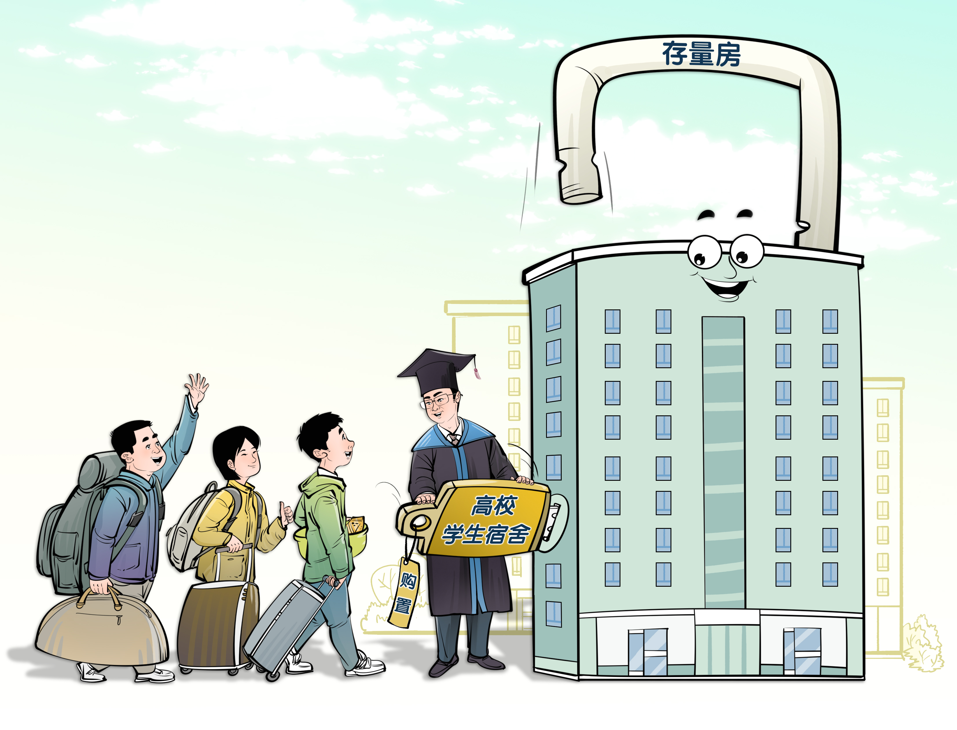 高校宿舍“以购代建”,既符合政策导向,从现实层面看也是好处多多。地产开发商能加快去库存,高校能低成本实现“即购即用”化解校内矛盾,而且学生们能获得更加宽敞舒适的居住体验,资源流通加速还可以节约社会总成本。当然,购得广厦千万间只是第一步,实际操作中如何确保学生安全、平衡管理、维护权益并不简单,校方也得多下功夫,审慎布局。