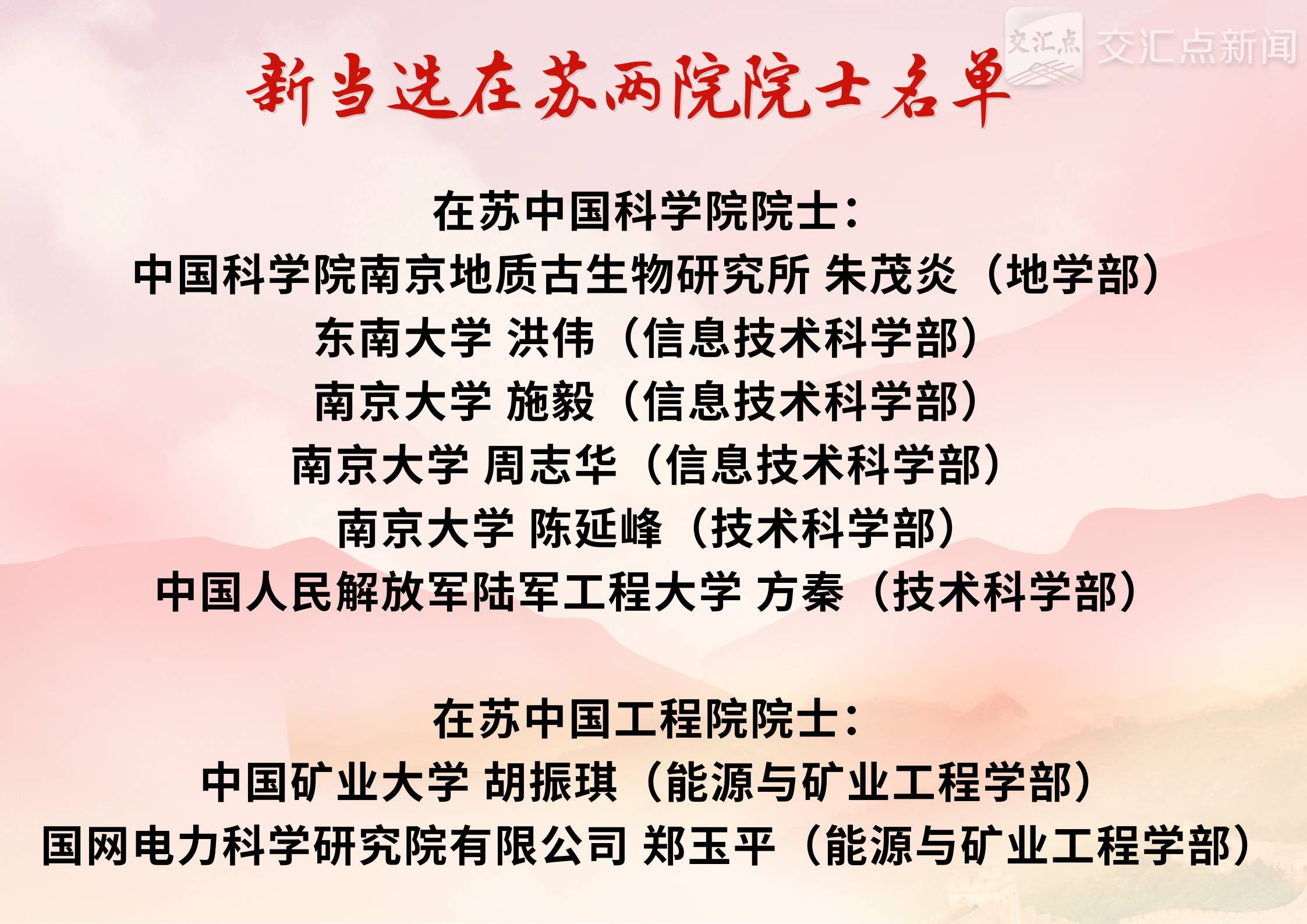 11月21日,2025年两院院士增选结果揭晓。江苏新增6位中国科学院院士、两位中国工程院院士。在苏两院院士达到122人,总数位居全国第三。以下为新科院士“速写”: