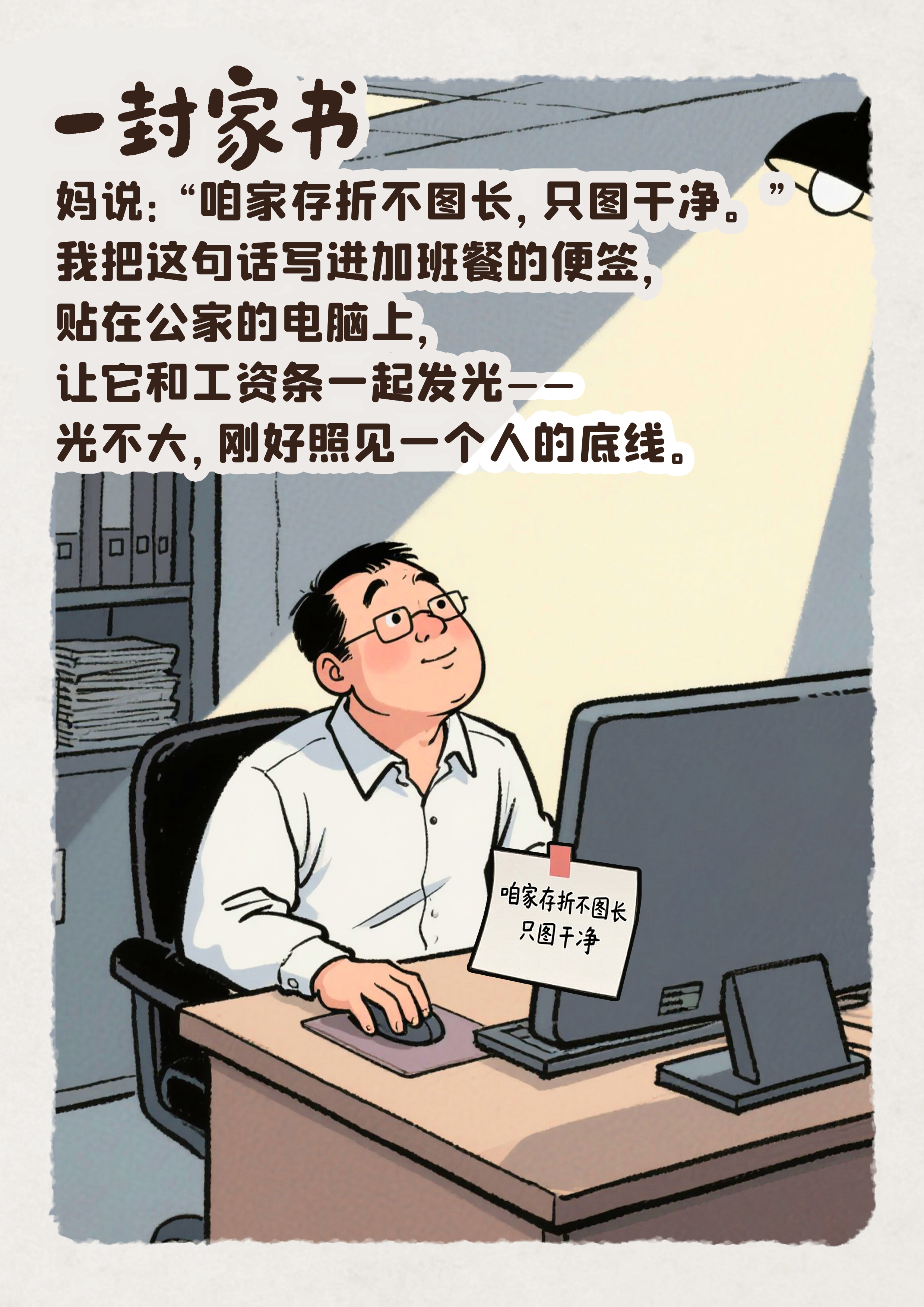 家家有存折,“长”意味着财富积累,“干净”强调来路清白。长辈的絮絮叮咛,意在时刻敲敲边鼓——人生的真正财富,不在于存折上数字的“增长”,而在于每一笔钱的来源都是干干净净的。君子爱财,取之有道。做人要守本分,每笔钱财都要来路正,图个心安理得。存折不图长只图干净,这是对好家风的传承。清正家风的传承,才是真正泽被后世的永久财富。存折不图长只图干净,用朴素的话语,道出了廉洁文化至真的内核。干净,是不可逾越的底线。无论身处何种岗位,手握多大权力,都应以“干净”为基石,用清清白白的行动,点亮勤廉的职业人生。