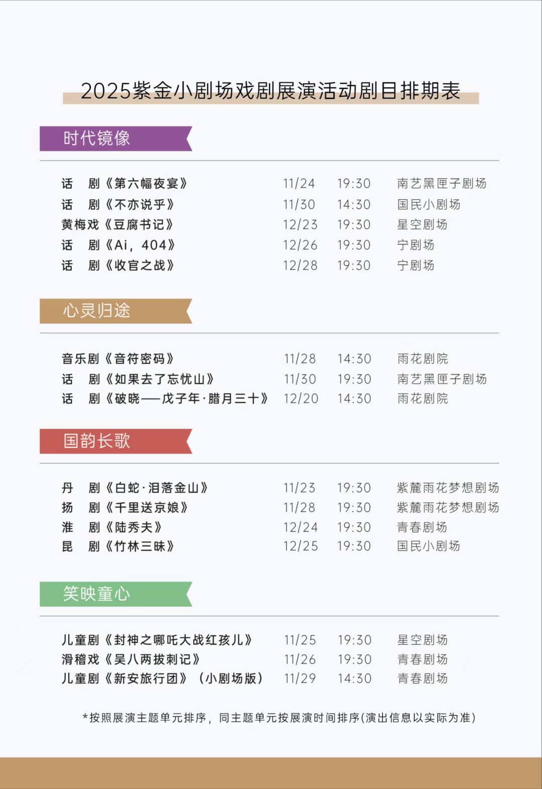 小剧场成就大梦想。紫金小剧场不仅是作品展示平台,更是人才孵化基地。从大纲征集到排练指导,从专家打磨到市场对接,一条完整的青年戏剧成长链正在江苏形成。15部作品、数十位青年创作者、上百场演出与活动,将共同编织一场属于“Z世代”的戏剧盛宴。