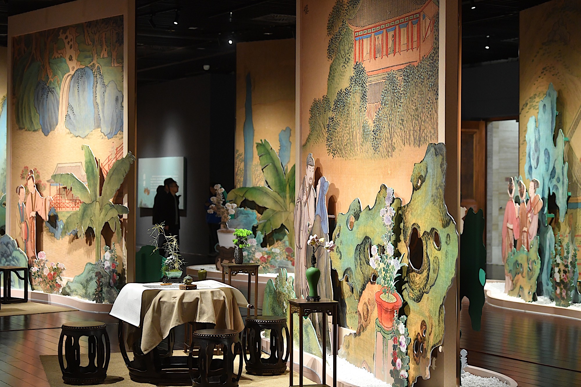 除了展出珍贵文物,策展团队还以无锡博物院所藏明代松江画派宋懋晋《寄畅园五十图景》中的画面为背景,打造了明代文人在书房中鉴藏、品茶、饮酒、赏画等不同的场景,将完整的“江南书房”搬入展厅,将生活点滴升华为审美体验。