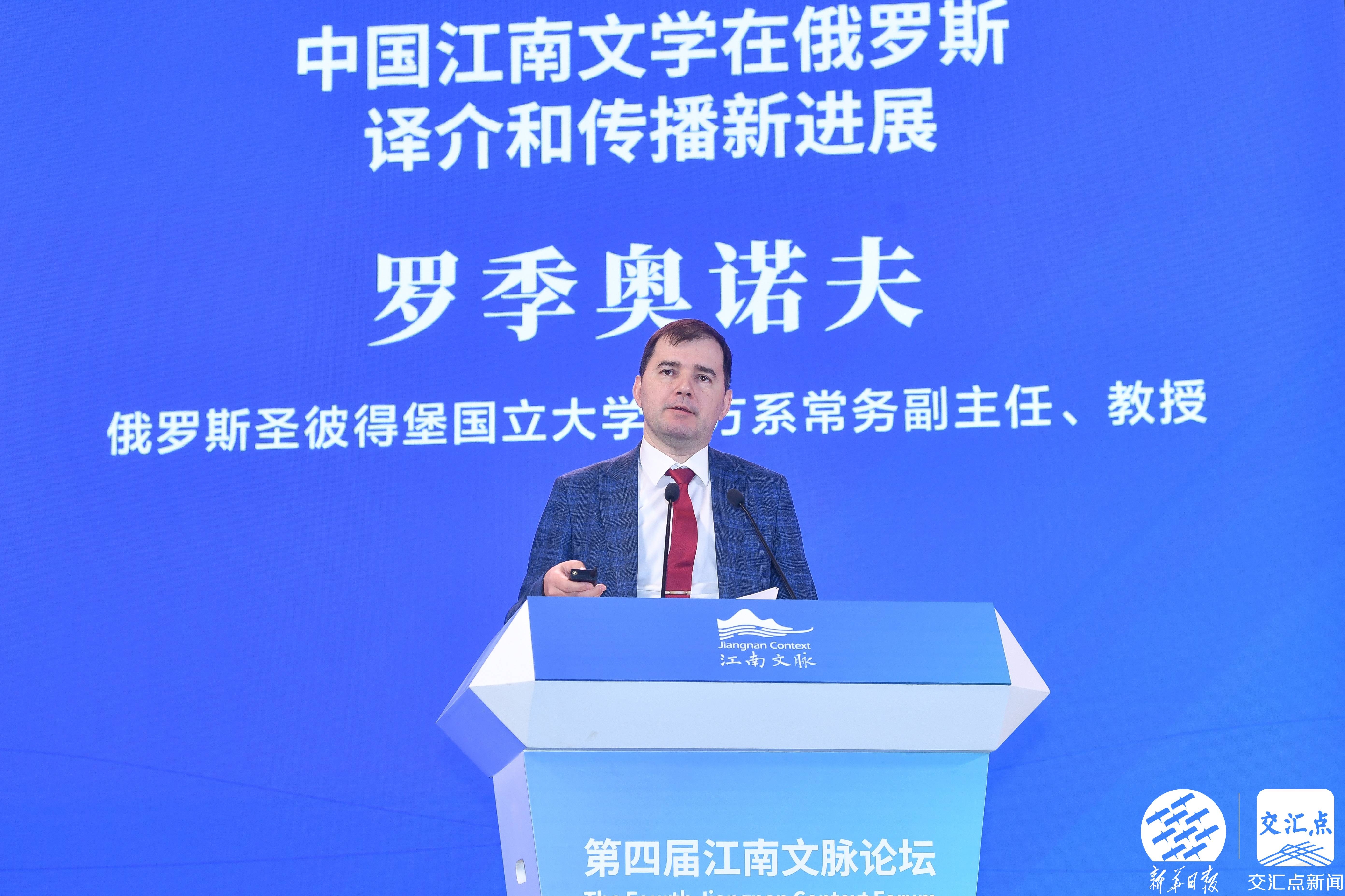 主旨演讲环节,香港中文大学(深圳)公共政策学院院长、前海国际事务研究院院长郑永年作主旨发言《中华文明与中国式现代化》;华东师范大学哲学系教授、人文社会科学学院院长杨国荣作主旨发言《江南文脉的现代化走向》;俄罗斯圣彼得堡国立大学东方系常务副主任、教授罗季奥诺夫作主旨发言《中国江南文学在俄罗斯译介传播及其进展》;复旦大学特聘讲席教授黄勇作主旨发言《江南儒学与生态文明》;著名经济学家,南京大学原党委书记洪银兴作主旨发言《建设人文经济学的江苏高地》。
