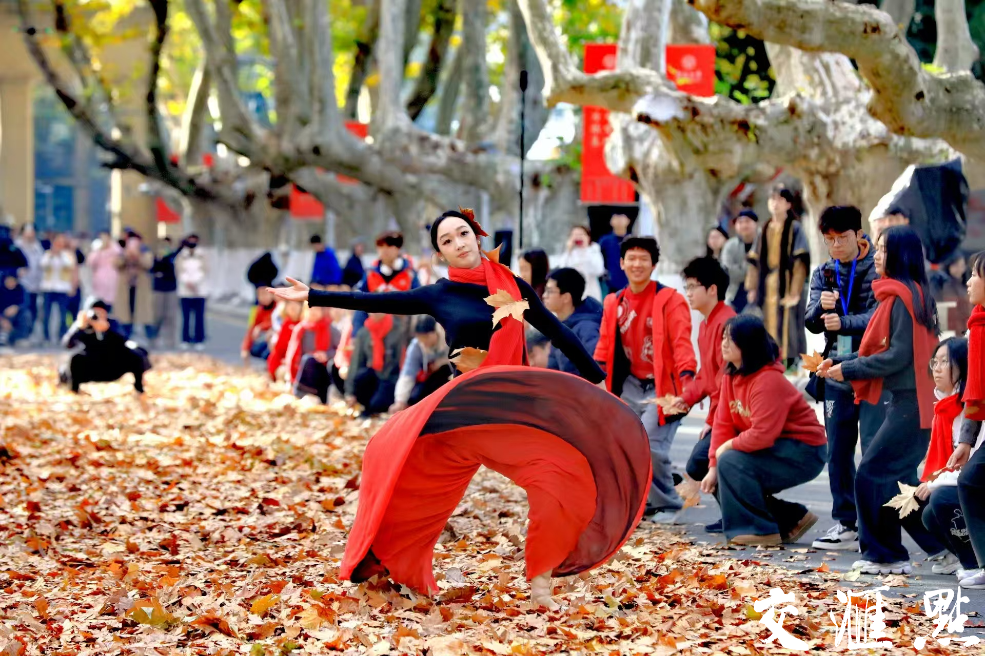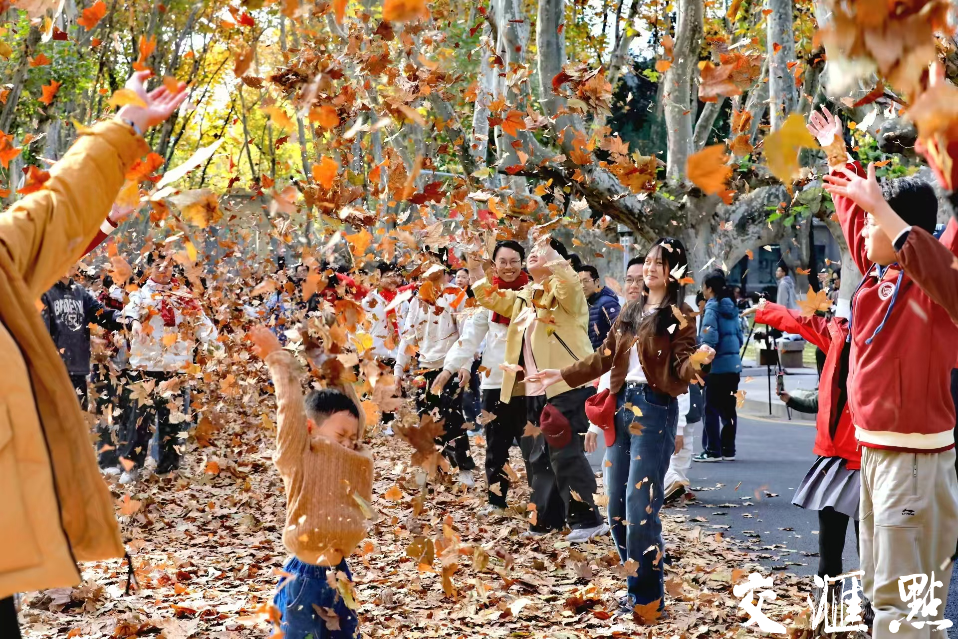 交汇点讯 东南大学四牌楼的梧桐大道,是深秋最动人的“时光长卷”。11月30日,东南大学梧桐文化节如约而至。百年古梧桐抖落满树金黄,将落叶层层叠叠铺成松软的“金色地毯”。这条因历史积淀而厚重、因秋日盛景而绚烂的大道,早已成为无数人心中学府底蕴与自然诗意的交汇点。