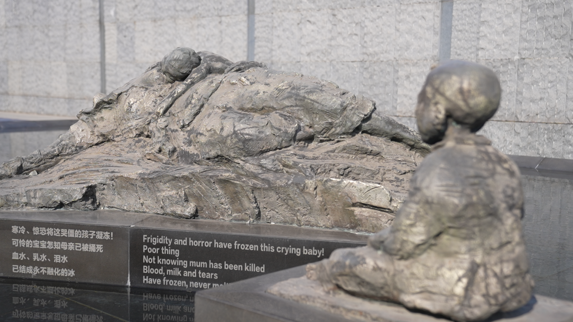 “父亲跌跌撞撞地扑到奶奶身边,摇晃着奶奶尚有余温的身体,无助地哭喊着:‘妈妈,你醒醒,你醒醒啊……’”南京大屠杀历史记忆传承人常小梅现场讲述了父亲常志强目睹家人被日军杀害的伤痛记忆。那位在生命尽头仍要给孩子喂一口奶的母亲和趴在妈妈怀里的婴儿,死在了那个绝望的寒冬,他们的经历定格在纪念馆雕塑广场上,成为传承历史记忆的载体。