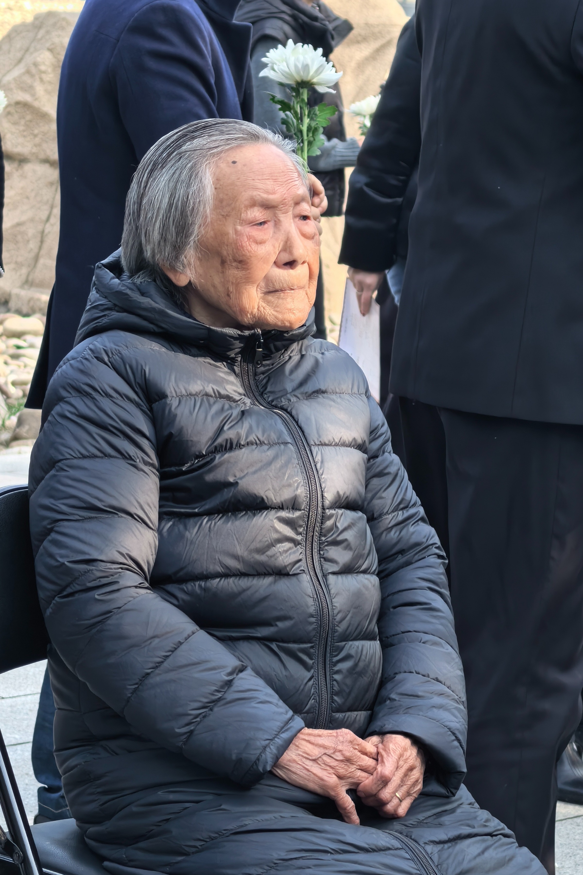 “88年了!88年了!”96岁的夏淑琴已是满头白发,她神情悲戚地注视着“哭墙”,嘴里轻声呢喃着。“顷刻间,我们和房东两家13口人,死了11口,备好的中饭还在灶台上,就只剩下我跟妹妹两个人了。”时隔88年再次回忆起当时的场景,夏淑琴依旧浑身颤抖,她急迫地重复道:“我活着的每一天,都希望等到日本承认错误,诚心道歉。”