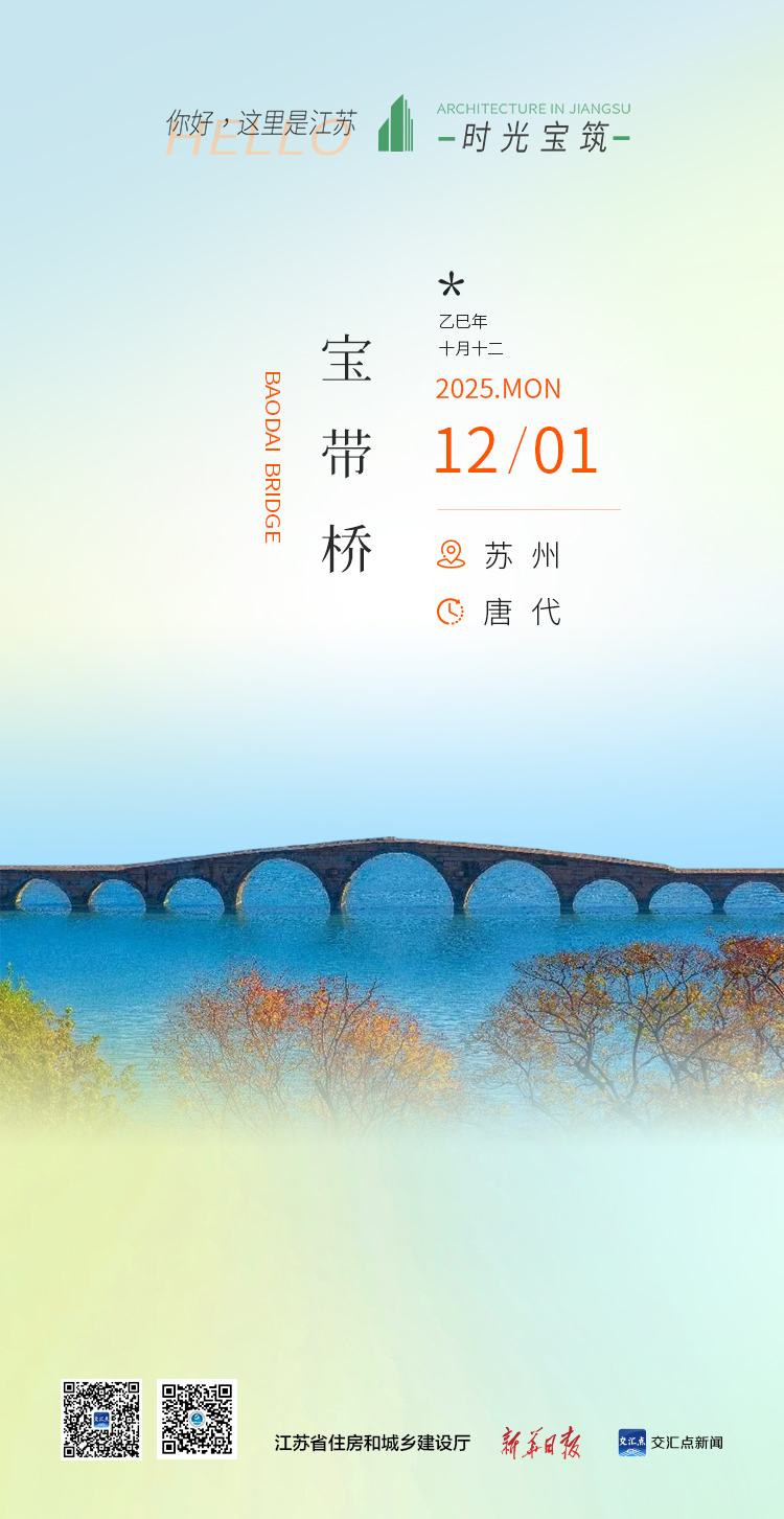 宝带桥位于苏州市吴中区,横卧于澹台湖与大运河相接之处,是中国现存建造时间最早的古桥之一。