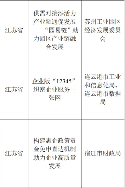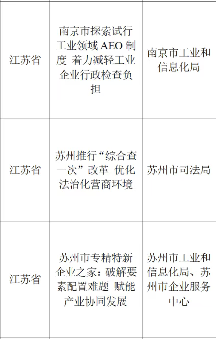 此外,《南京市探索试行工业领域 AEO 制度 着力减轻工业企业行政检查负担》《苏州推行“综合查一次”改革 优化法治化营商环境》《苏州市专精特新企业之家:破解要素配置难题 赋能产业协同发展》《供需对接添活力 产业融通促发展——“园易链”助力园区产业链融合发展》《企业版“12345”织密企业服务一张网》《构建惠企政策资金免申直达机制助力企业高质量发展》等案例入选优秀案例。