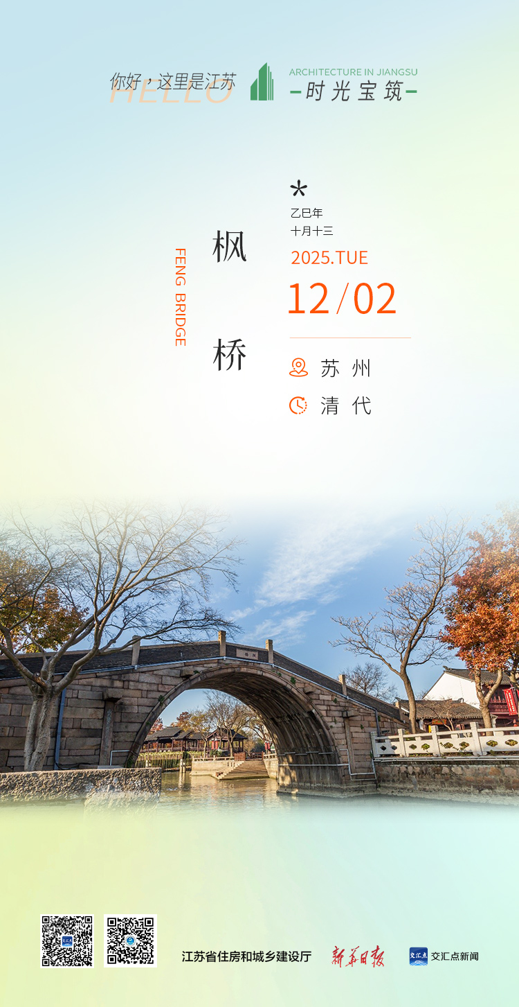 枫桥位于苏州寒山寺旁,始建于唐代,现存桥梁为清代重建,因唐代诗人张继的名作《枫桥夜泊》而闻名。