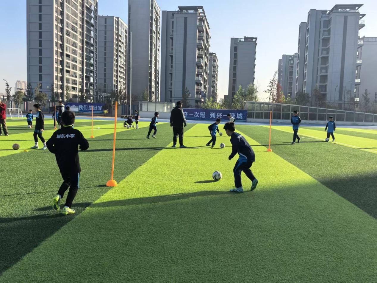 虽是双休日,但城东中心小学济川校区的足球场一如往常的热闹。在教练们的指导下,孩子们分组进行运球、传球、射门、对抗等训练。“我踢球已经两年了,在场上踢的是前锋。”读五年级的申辰说,踢足球让他觉得很快乐。