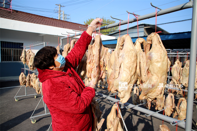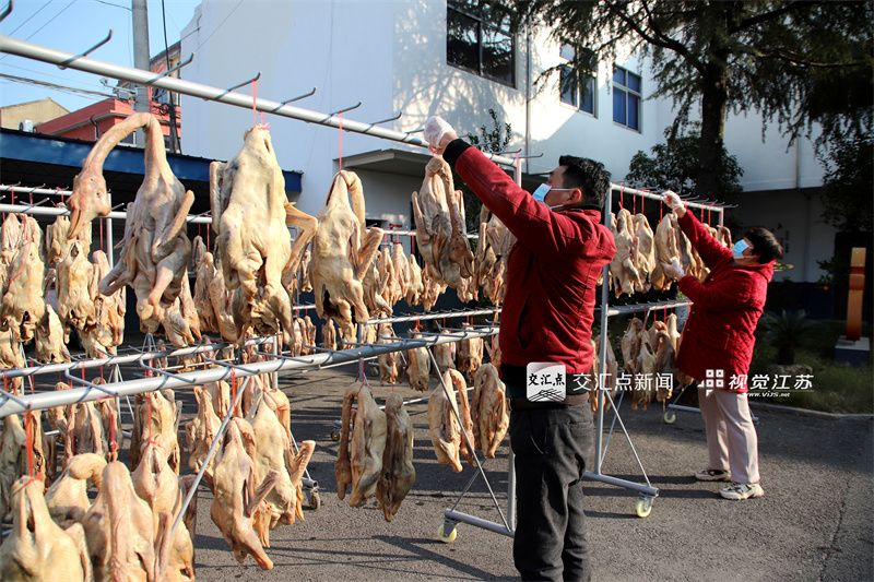 (特约摄影 高晓平 9:16摄 10:00上线)12月3日,工作人员正在南京市高淳区桠溪街道永宁村咸鹅加工生产基地忙着晾晒咸鹅,准备供应市场。据了解,咸鹅加工是永宁村的特色产业,大雪节气临近,该村组织工作人员加紧腌制晾晒咸鹅供应市场。